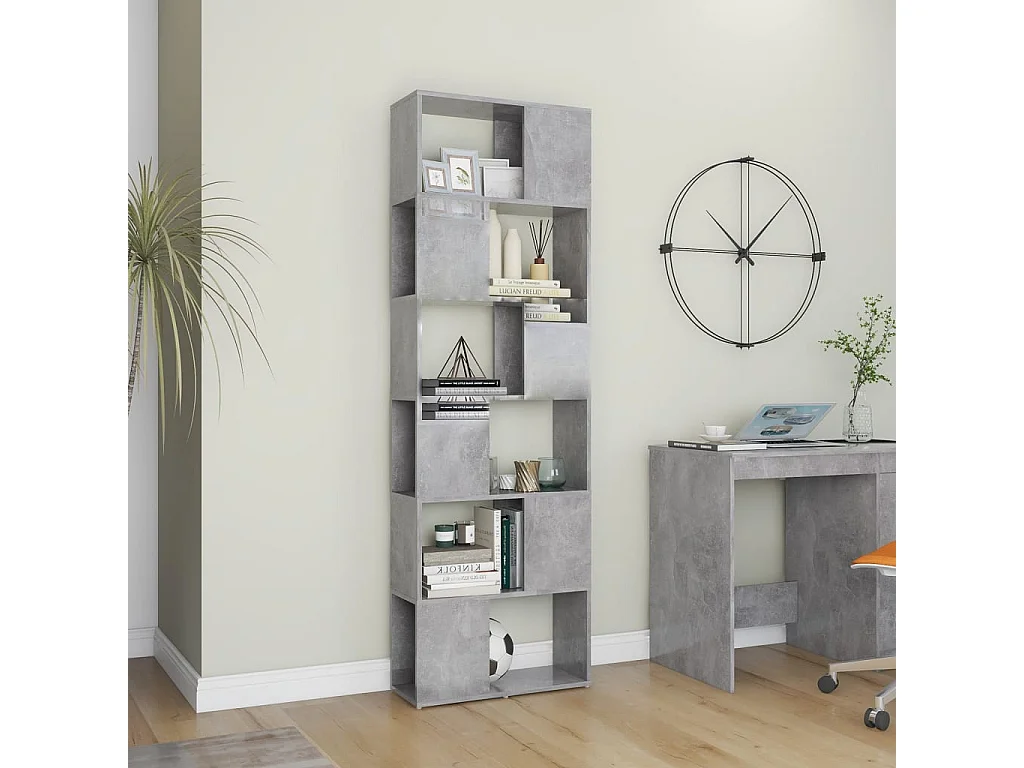 Bibliothèque | Etagère de rangement | Meuble de rangement gris béton 60x24x176 cm bois d'ingénierie