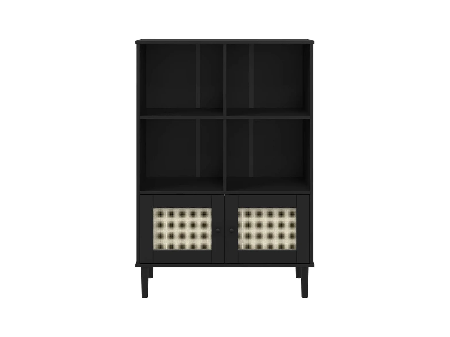 Bibliothèque | Etagère de rangement | Meuble de rangement SENJA aspect de rotin noir bois massif de pin