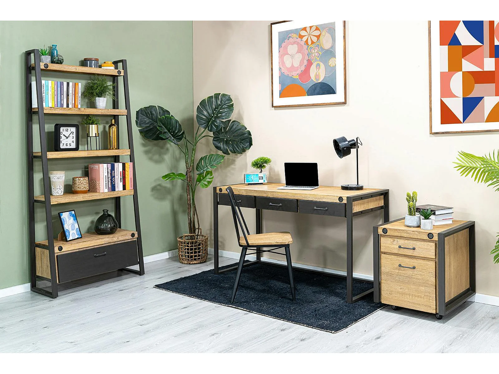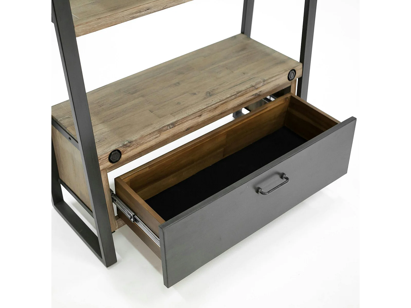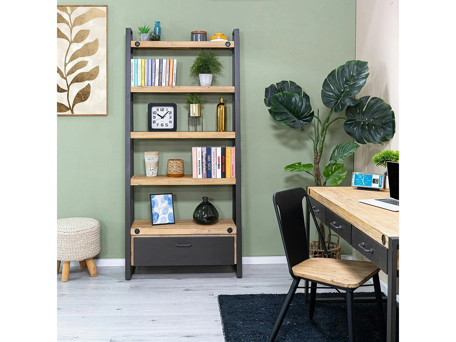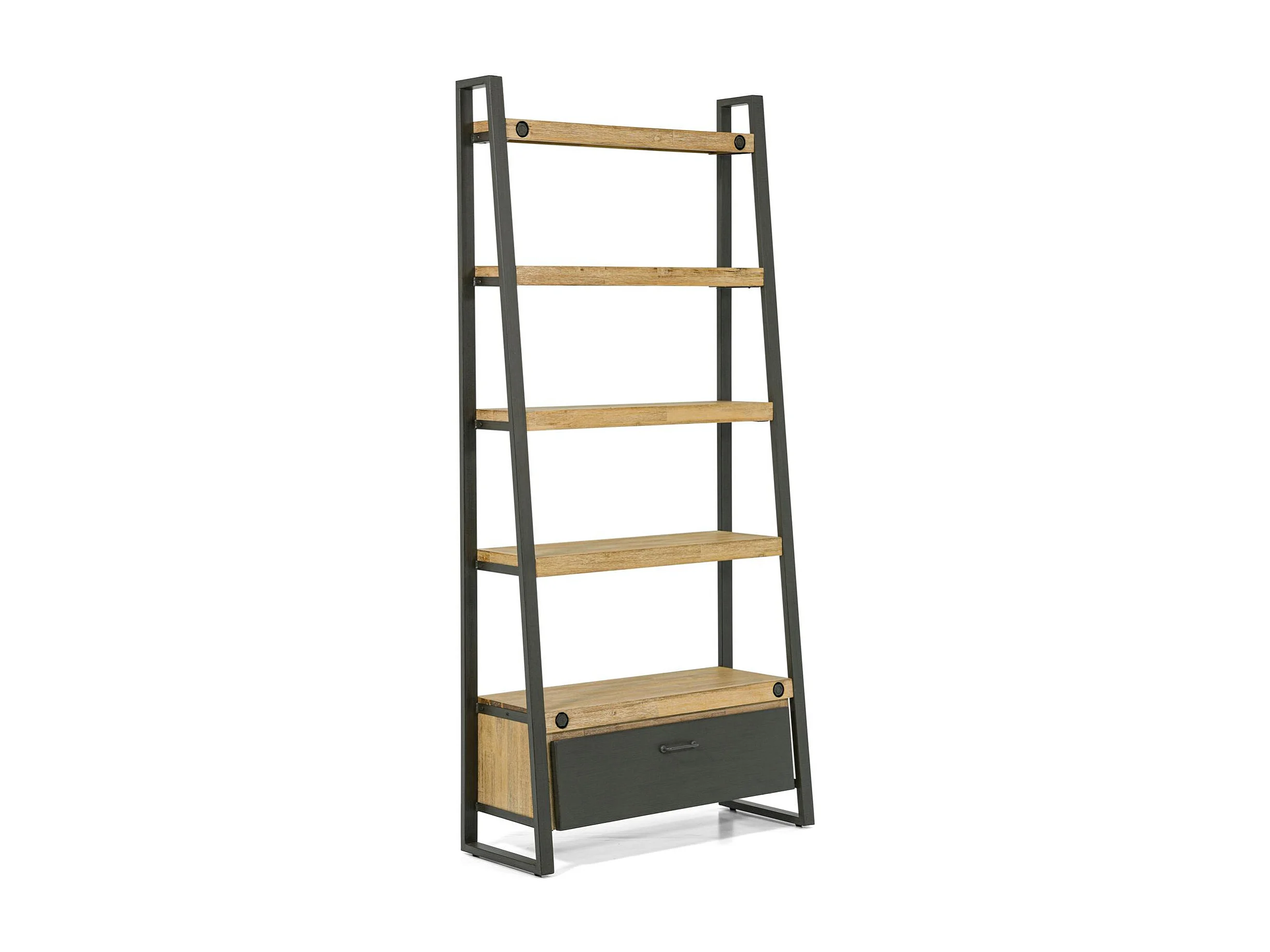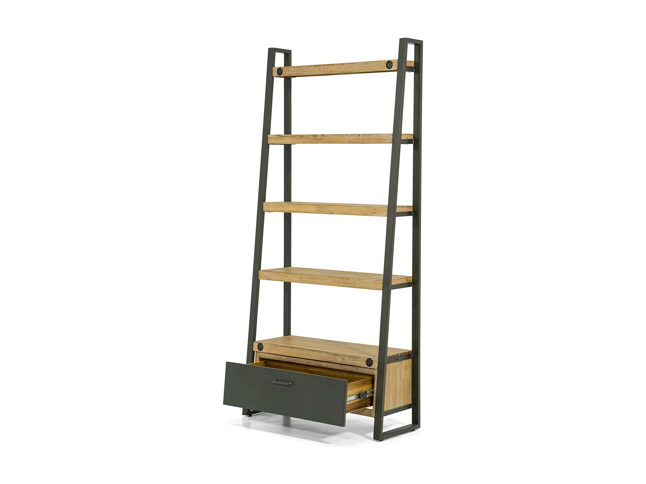 Bibliothèque Etagère Inspiration Indus' en Acacia et Métal, 5 plateaux et 1 tiroir métal 90x35x195cm BROOKLYN