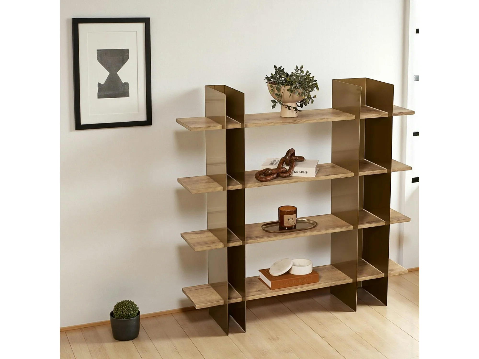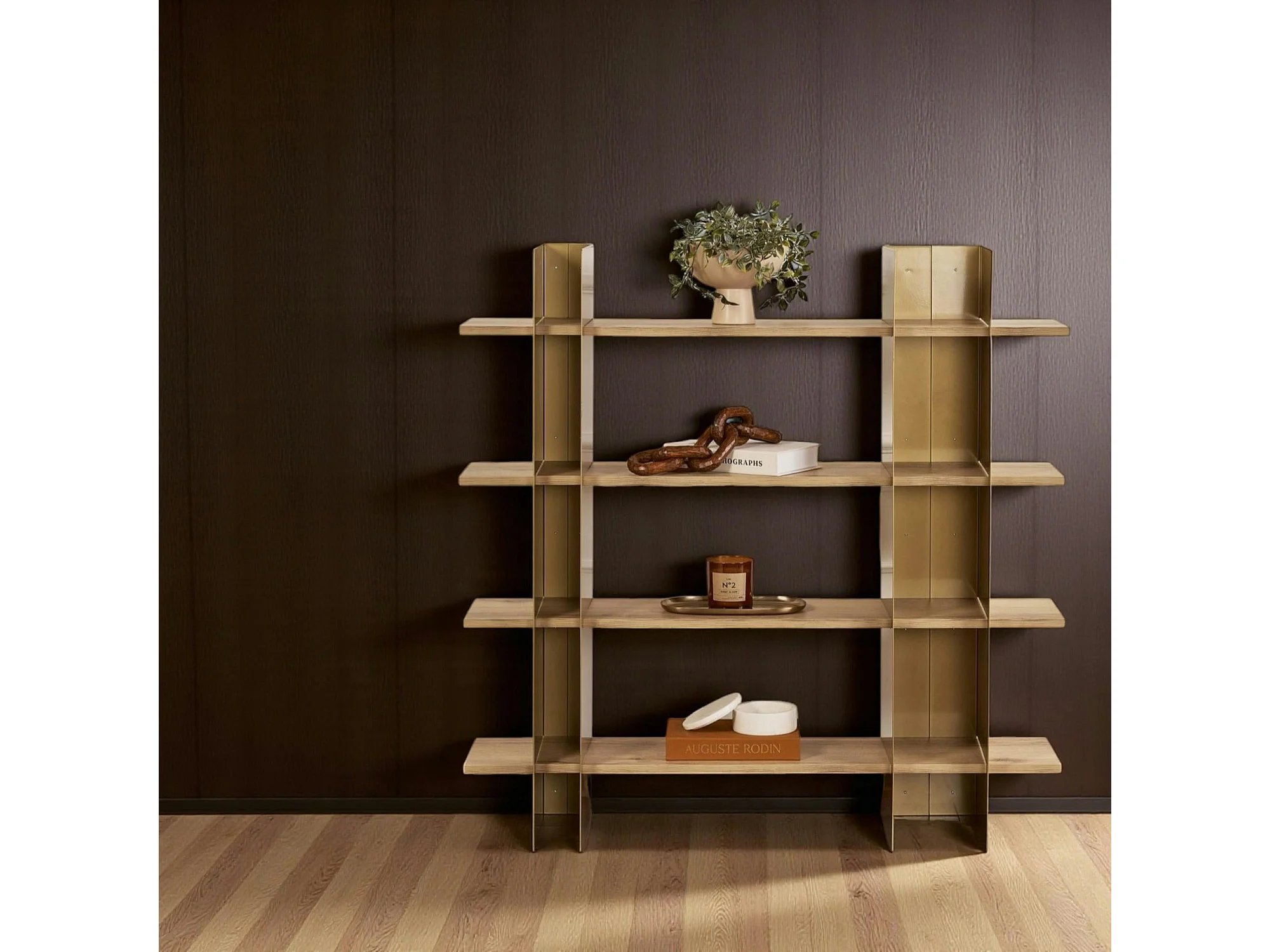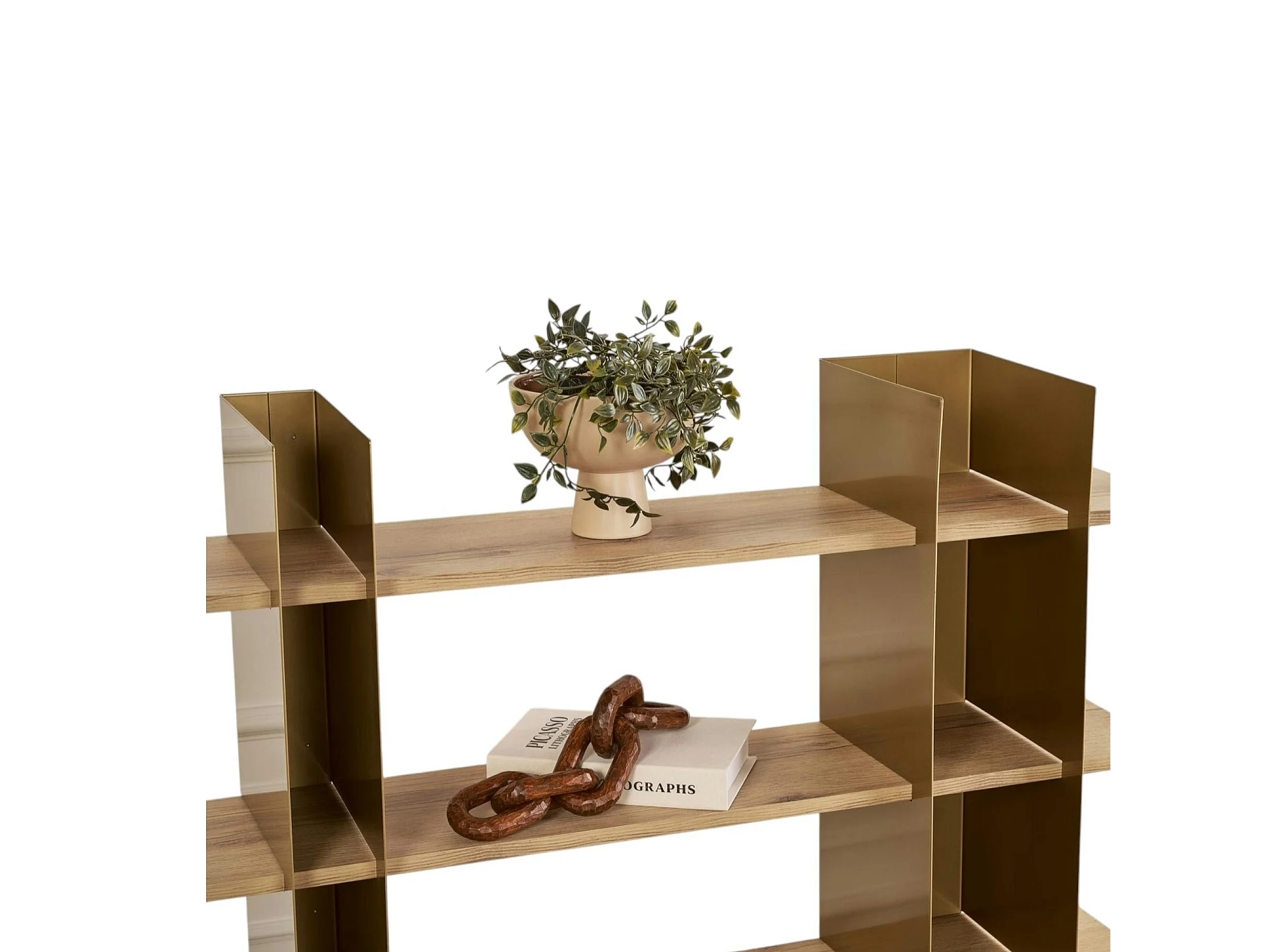 Bibliothèque étagère moderne 4 plateaux - niches dorées JENA