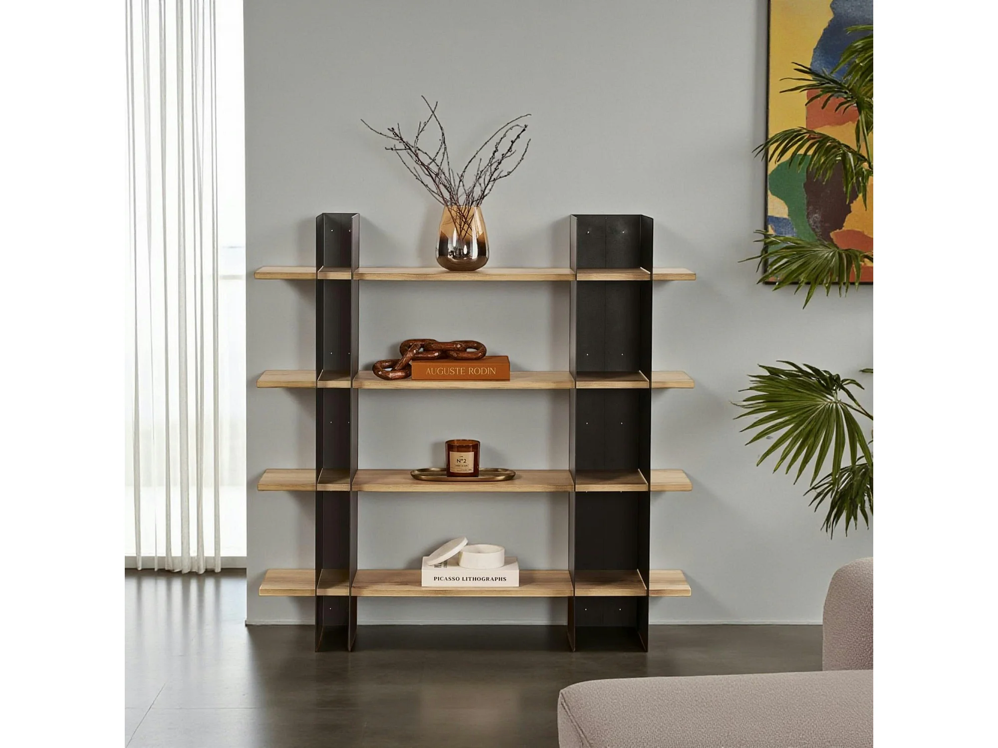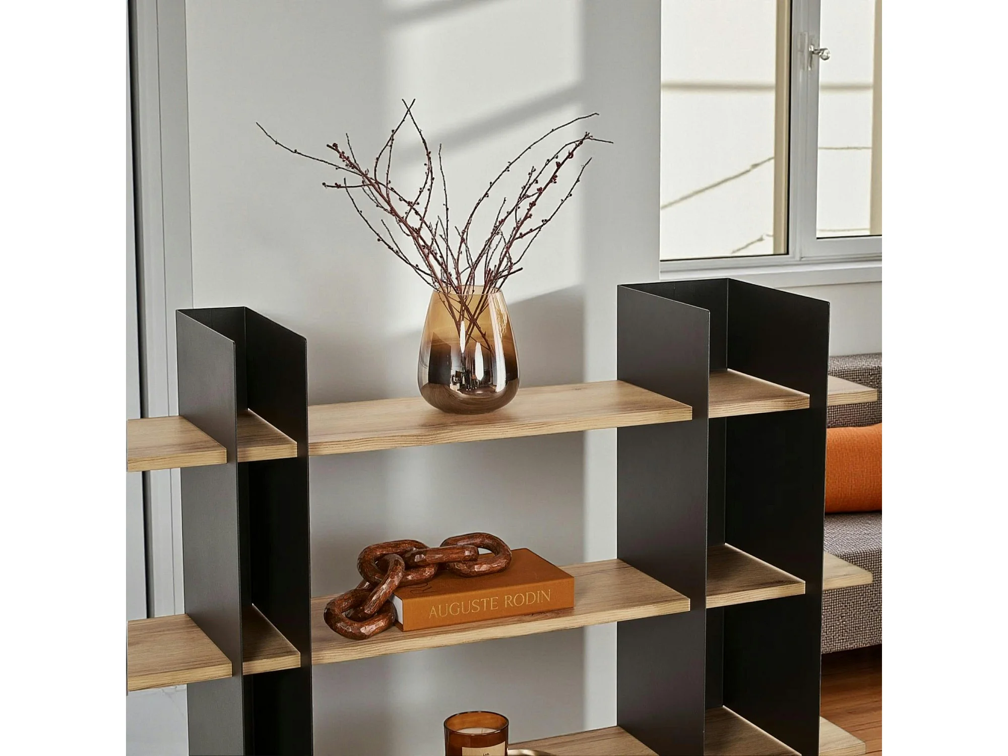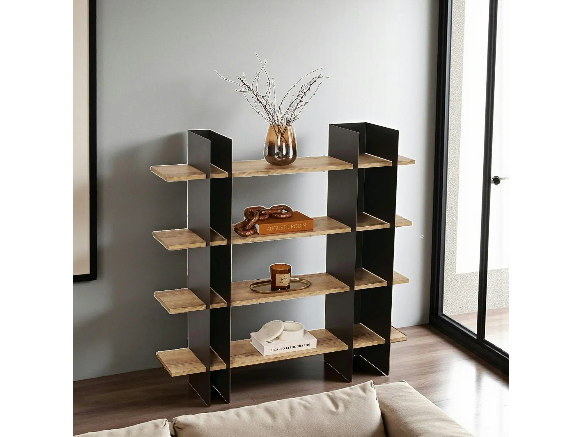 Bibliothèque étagère moderne 4 plateaux - niches noires JENA