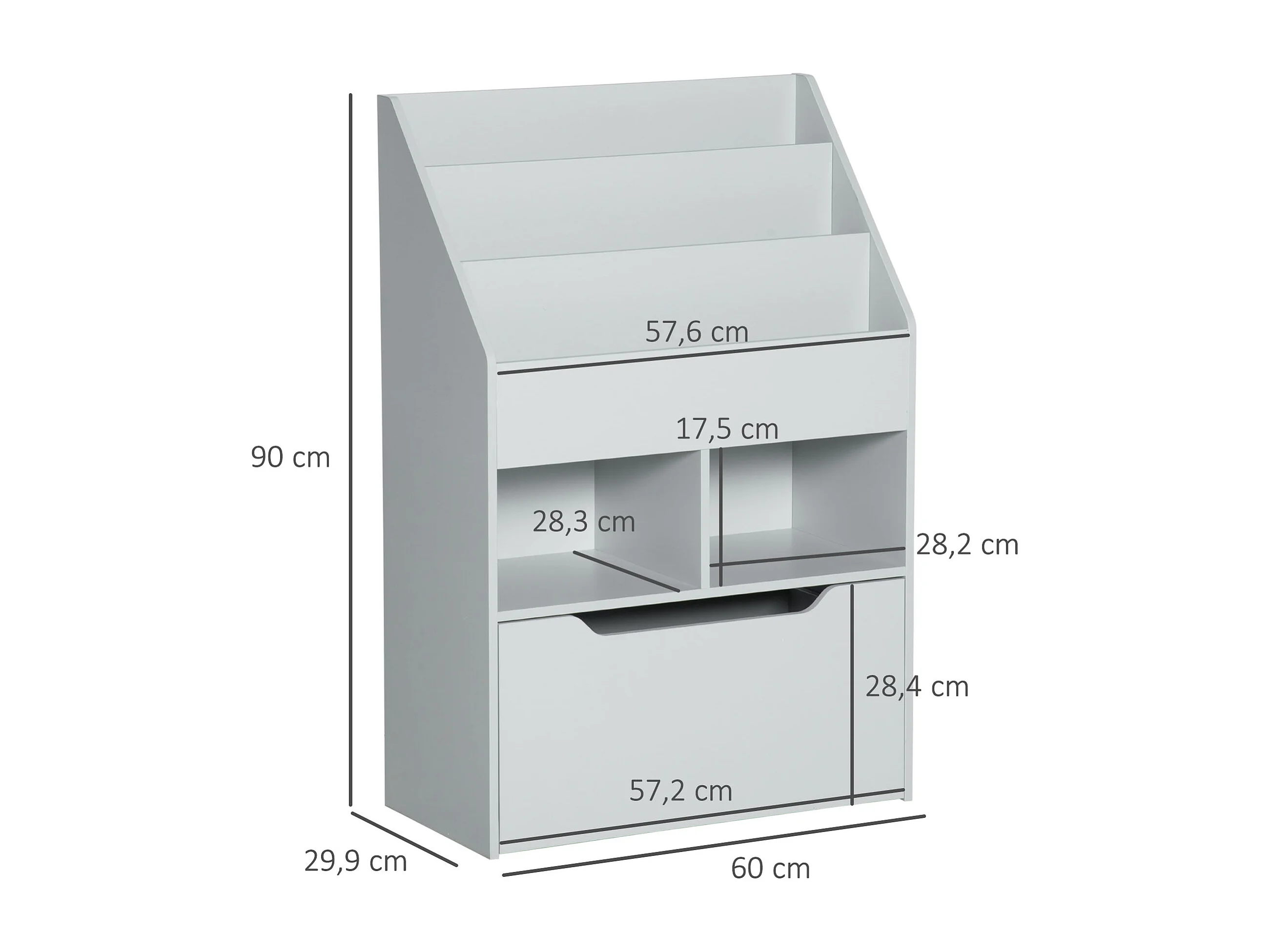 Bibliothèque étagère multi-rangement 3 étagères 2 niches grand tiroir MDF gris clair