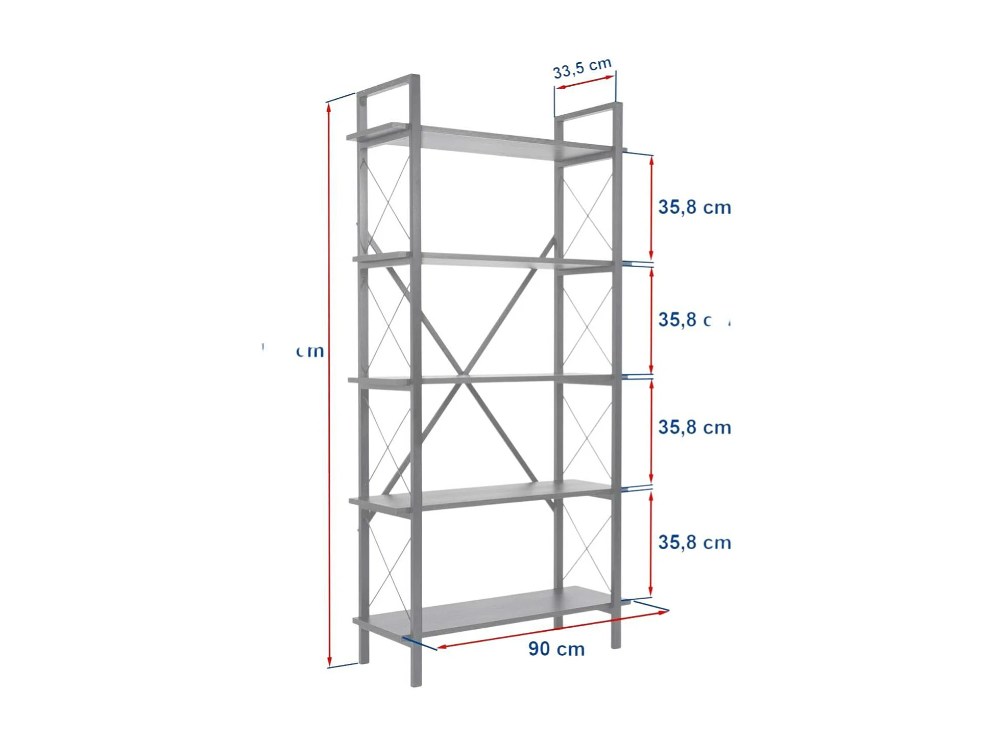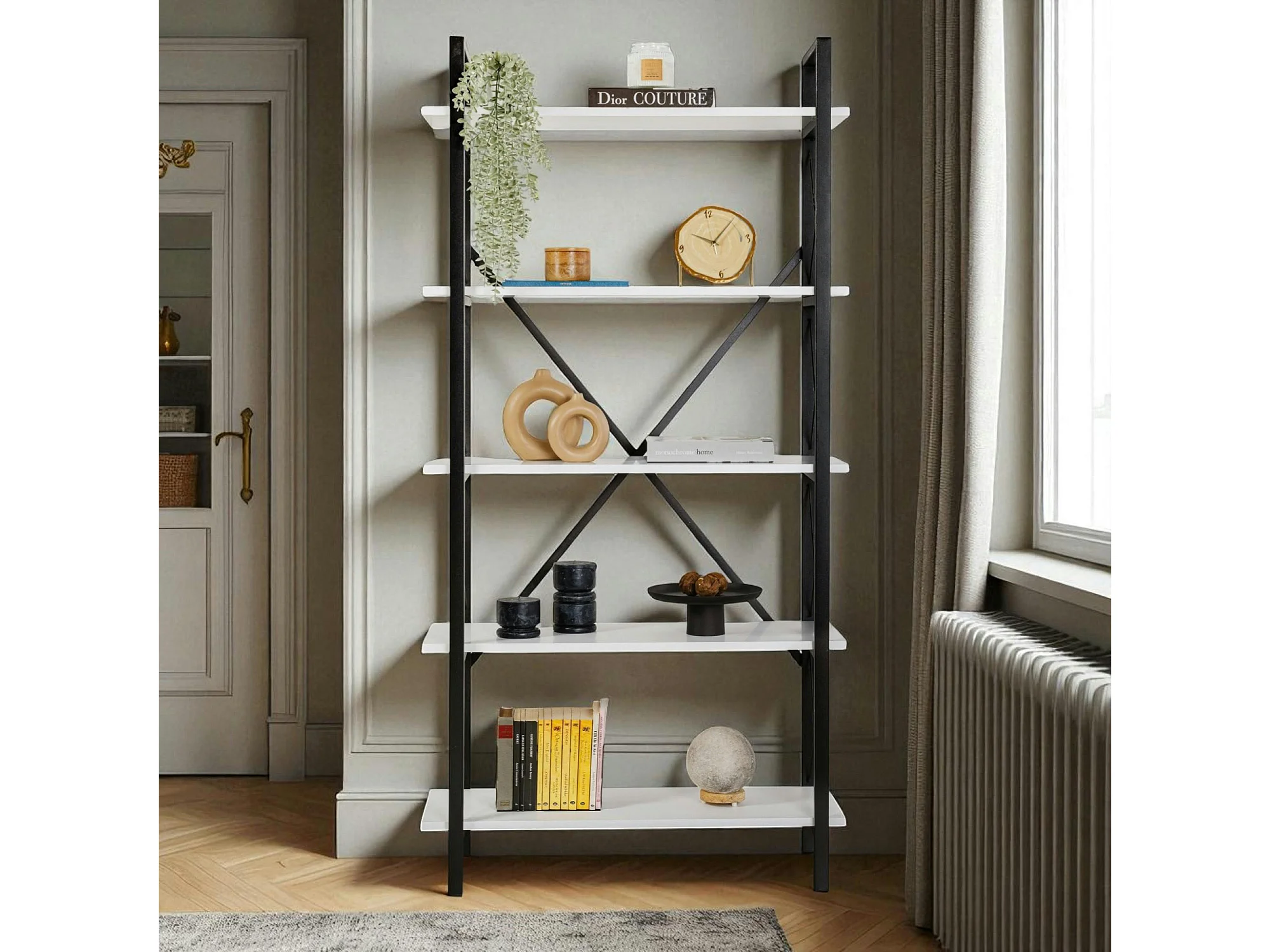 Bibliothèque étagère noire, 5 plateaux blancs JENA