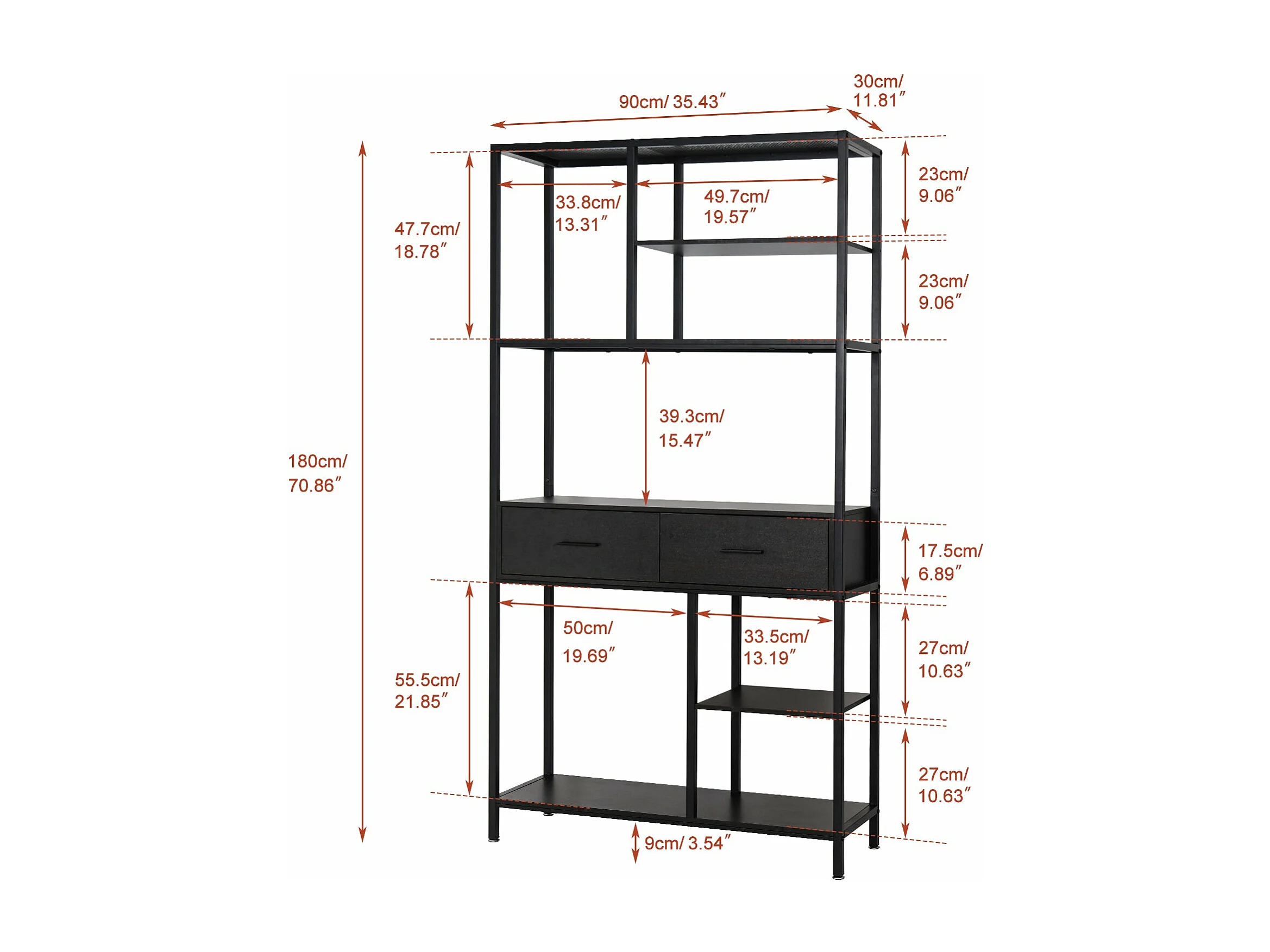 Bibliothèque étagère rangement industrielle meuble de rangement en bois et métal salon bureau 180x90x30cm