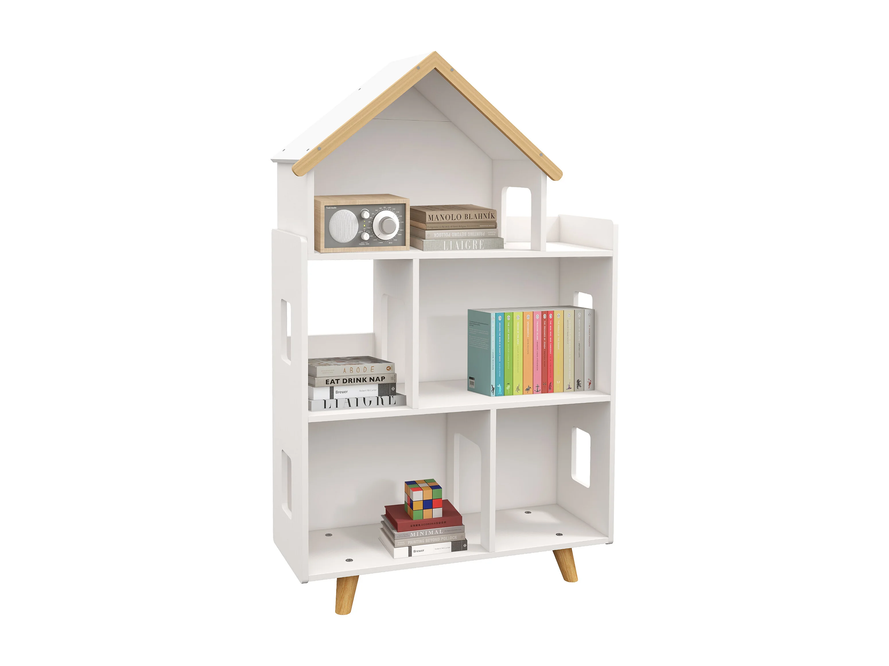 Bibliothèque étagère scandinave design maison 5 niches étagère pieds effilés bois pin MDF blanc