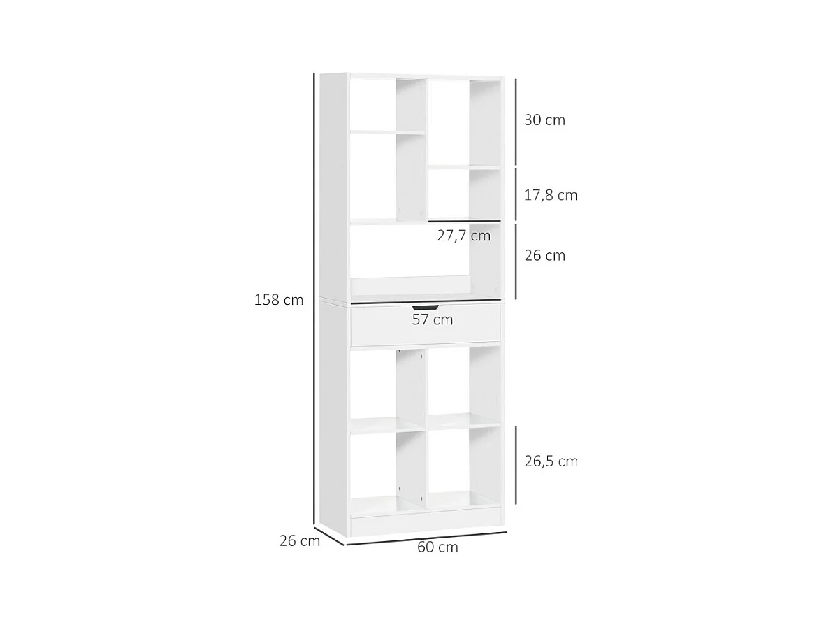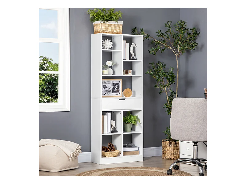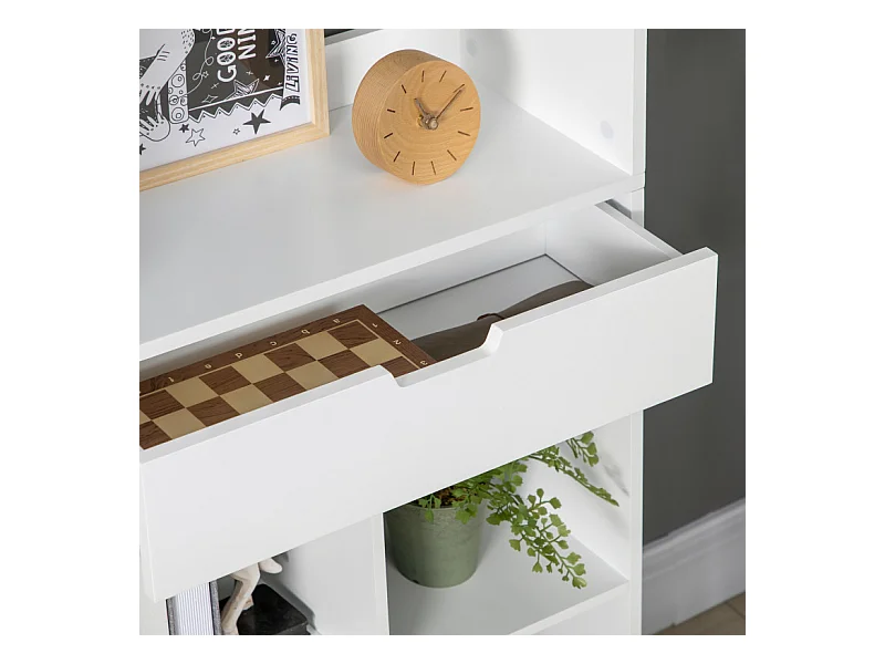 Bibliothèque étagère multi-rangement 3 étagères 2 niches grand tiroir MDF blanc