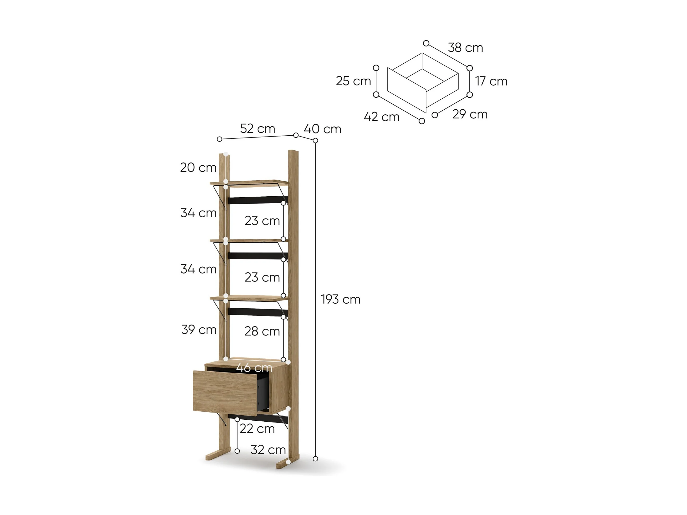 Bibliothèque étroite avec tiroir - 52 cm - couleur chêne huilé - OLLIE