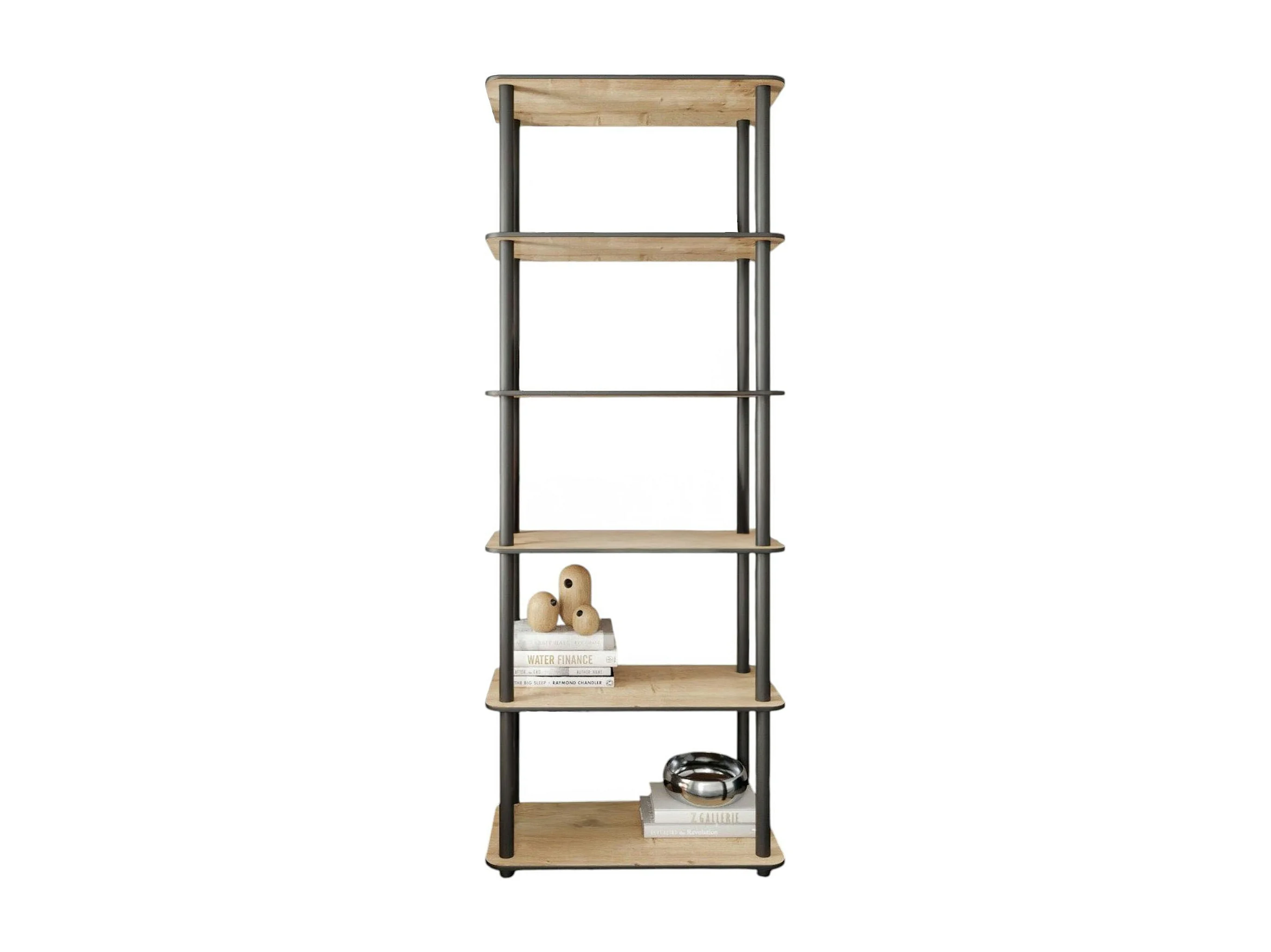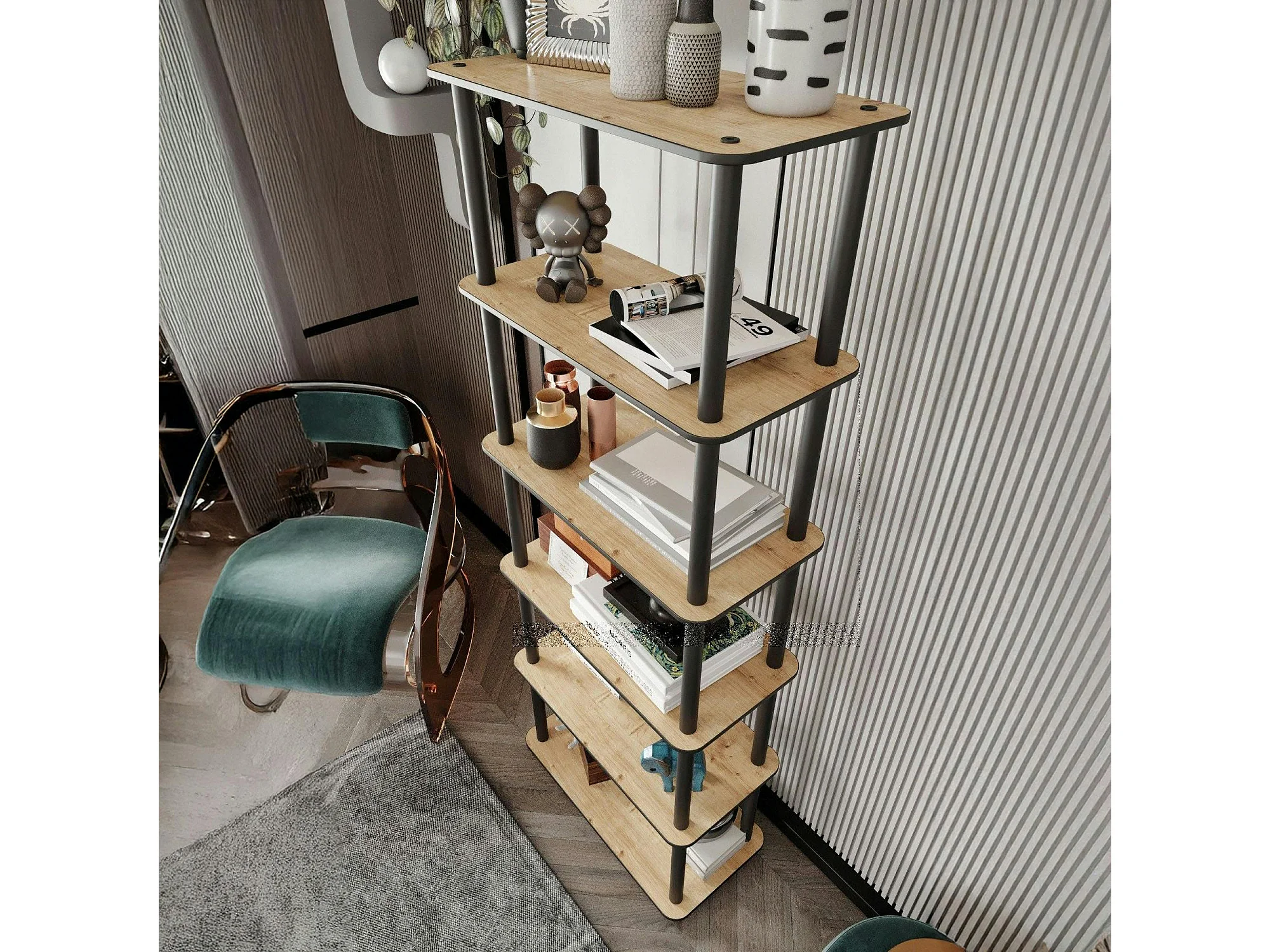Bibliothèque étroite moderne effet bois - 6 étagères JENA