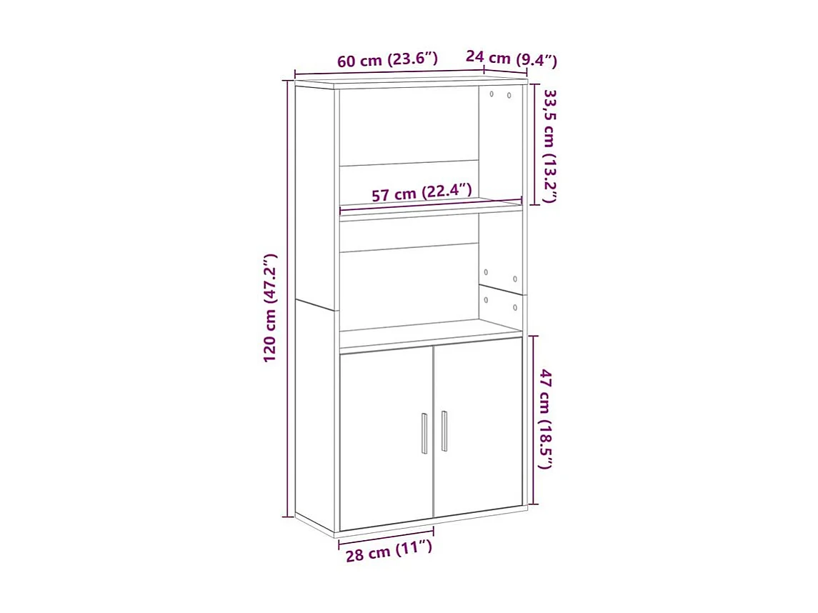 Bibliothèque sonoma gris 60x24x85 bois d'ingénierie