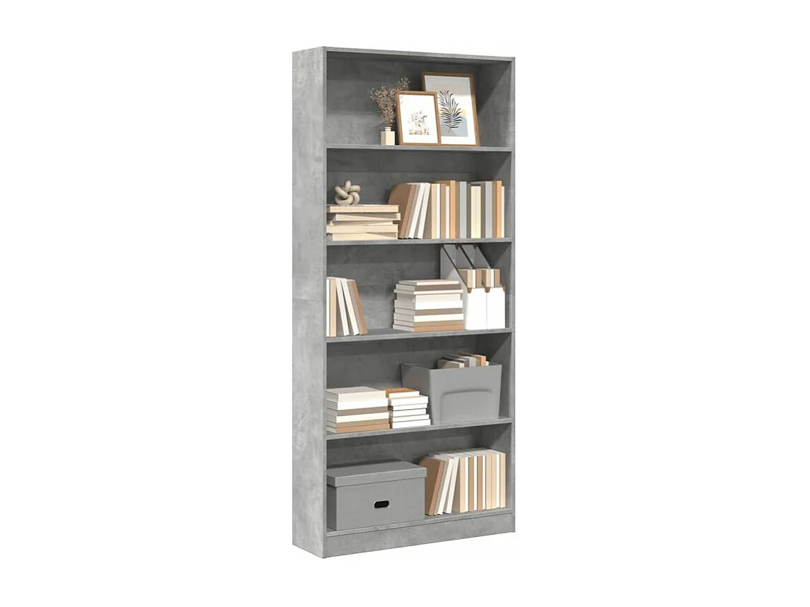Bibliothèque gris béton 80x24x176 bois d'ingénierie