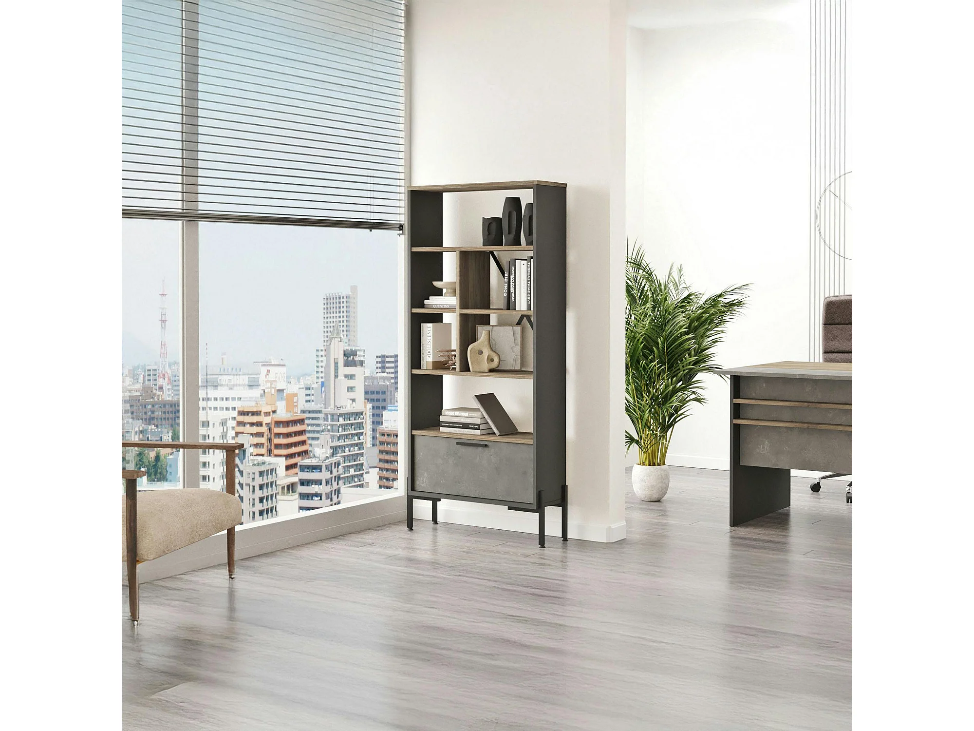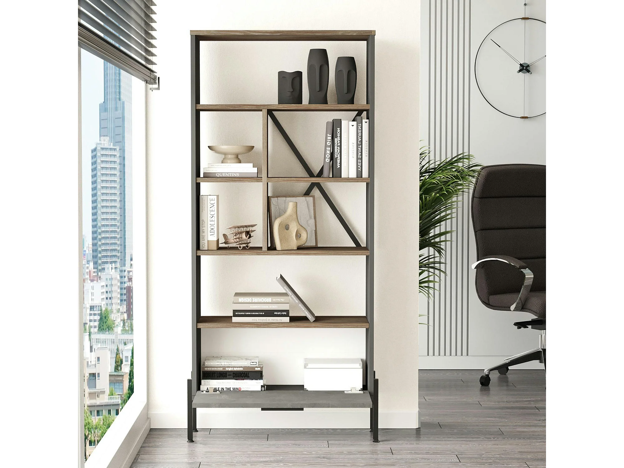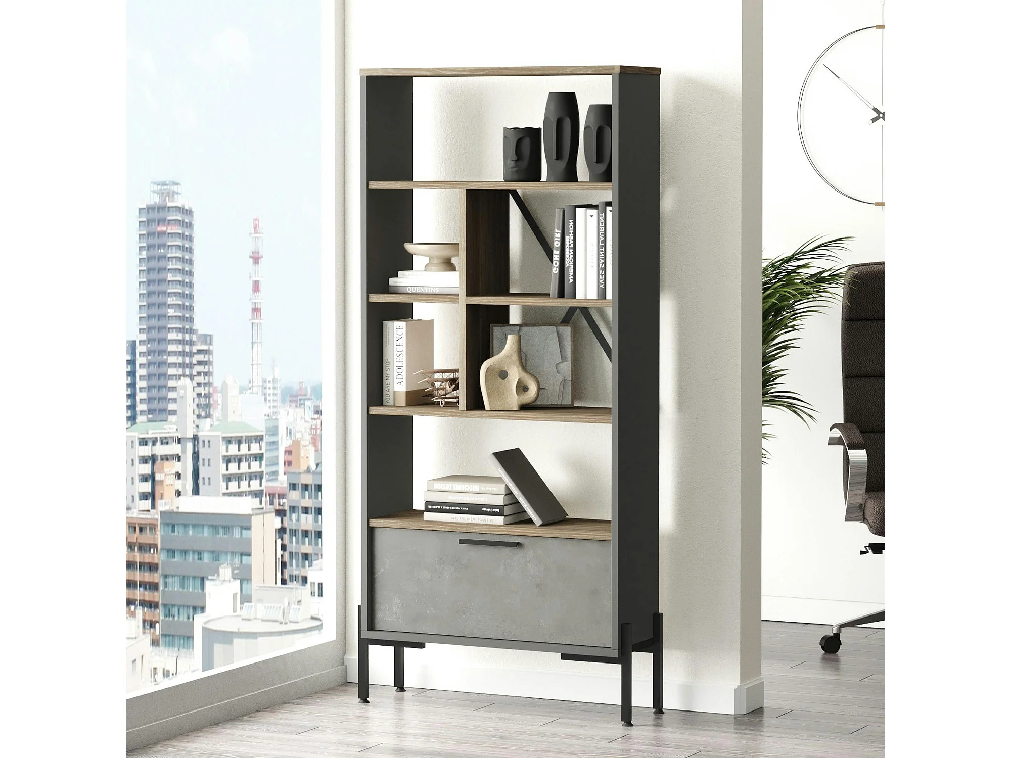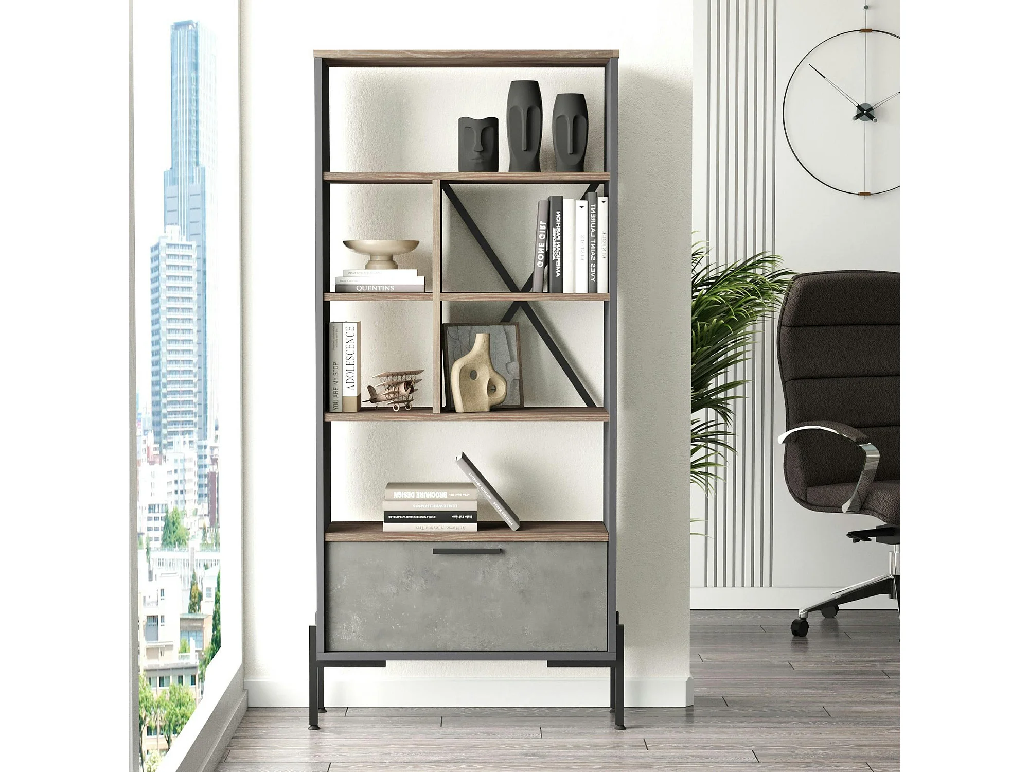 Bibliothèque industrielle effet bois & métal 1 porte JENA