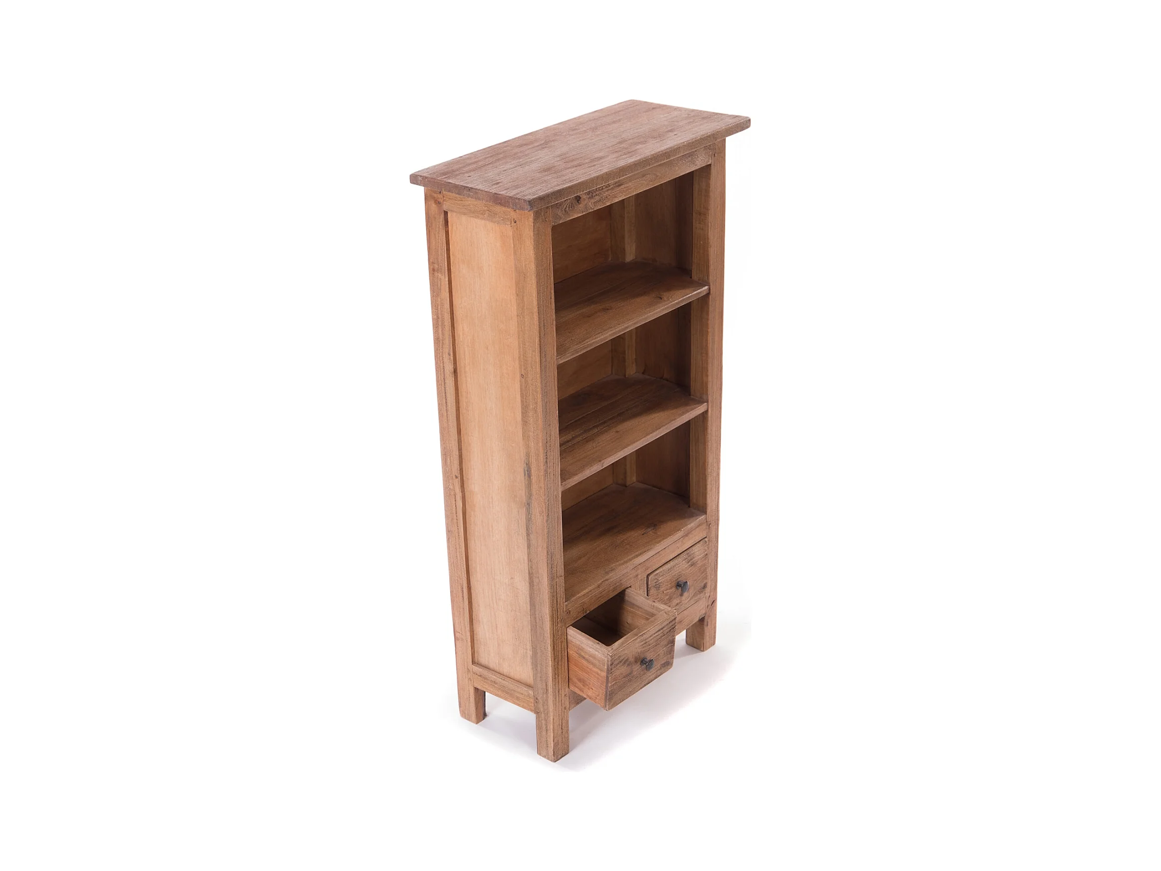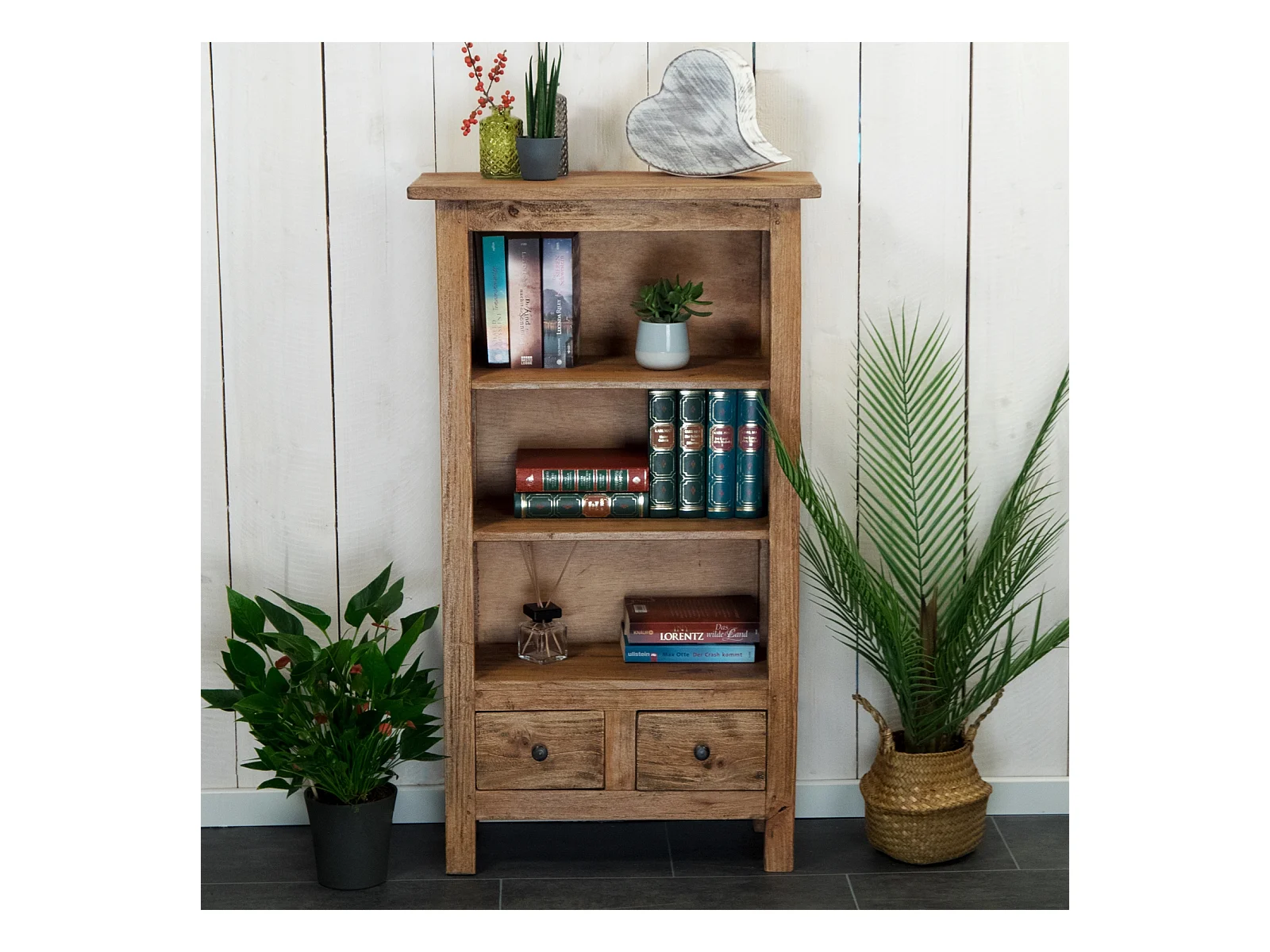 BIBLIOTHÈQUE Livres Bois massif de mahogany, 3 niveaux, 2 tiroirs couleurs naturelles
