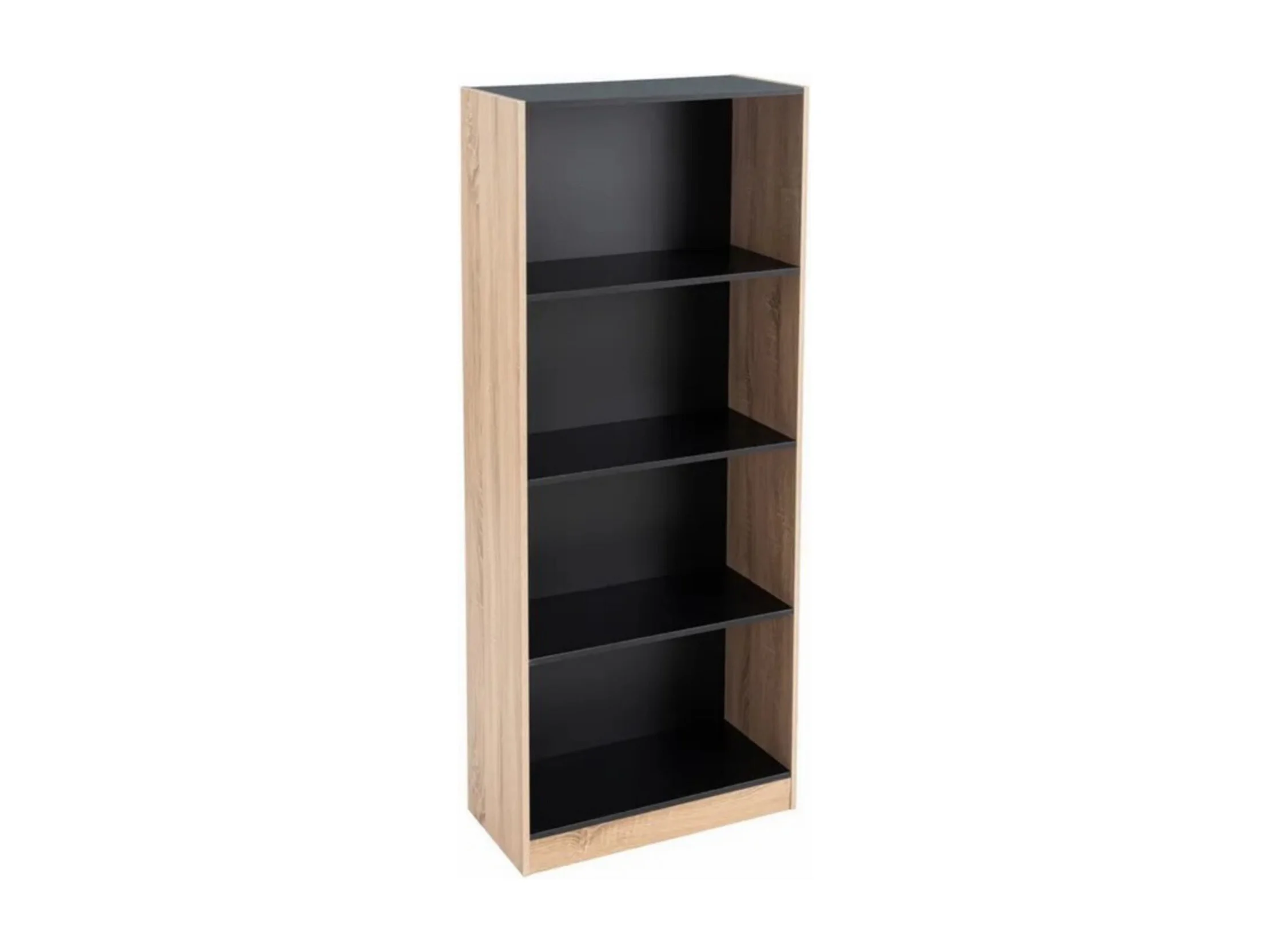 Bibliothèque meuble étagère coloris naturel/noir - Longueur 60 x Profondeur 30 x Hauteur 76 cm