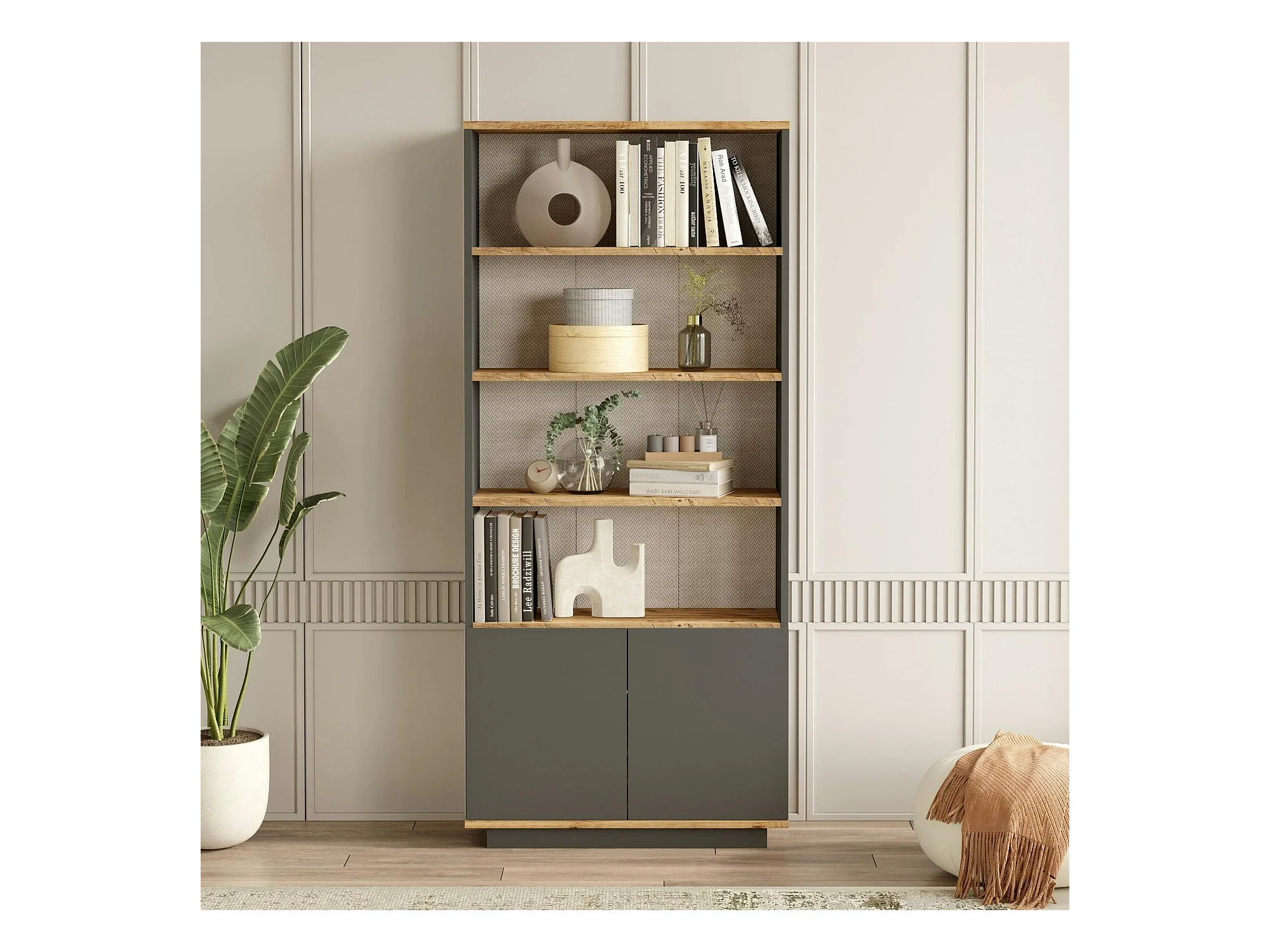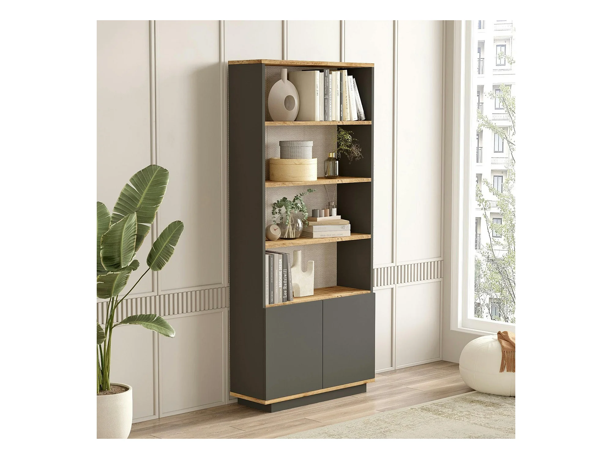 Bibliothèque moderne grise avec rangement bas fermé MARFA