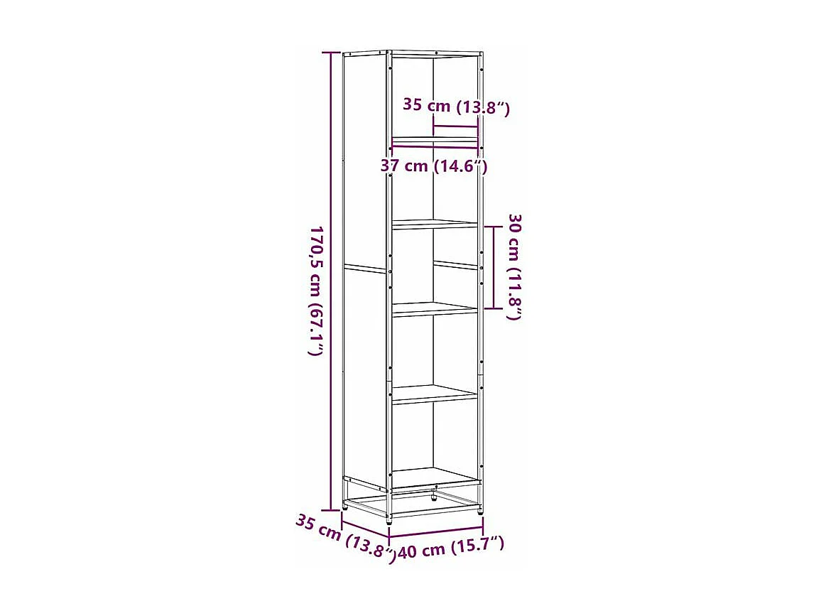 Bibliothèque noir 60x35x139 bois d'ingénierie