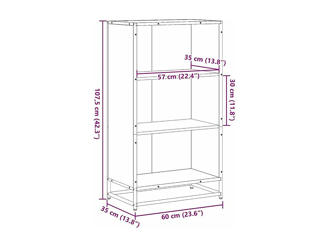 Bibliothèque à 3 niveaux noir 60x30x86 bois d'ingénierie