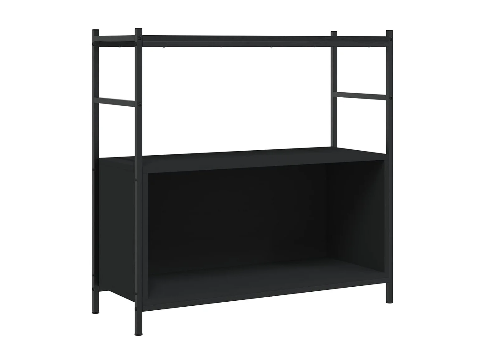 Bibliothèque noir 80x30x78,5 cm bois d'ingénierie et fer