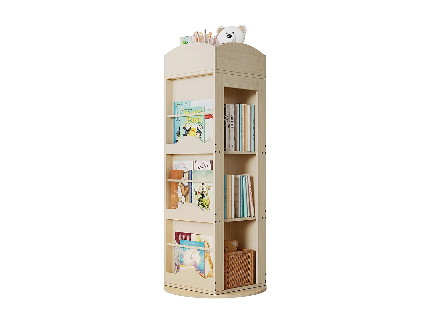 Bibliothèque pivotante étagère pied rotation 360° rangement enfants adultes 4 étagères