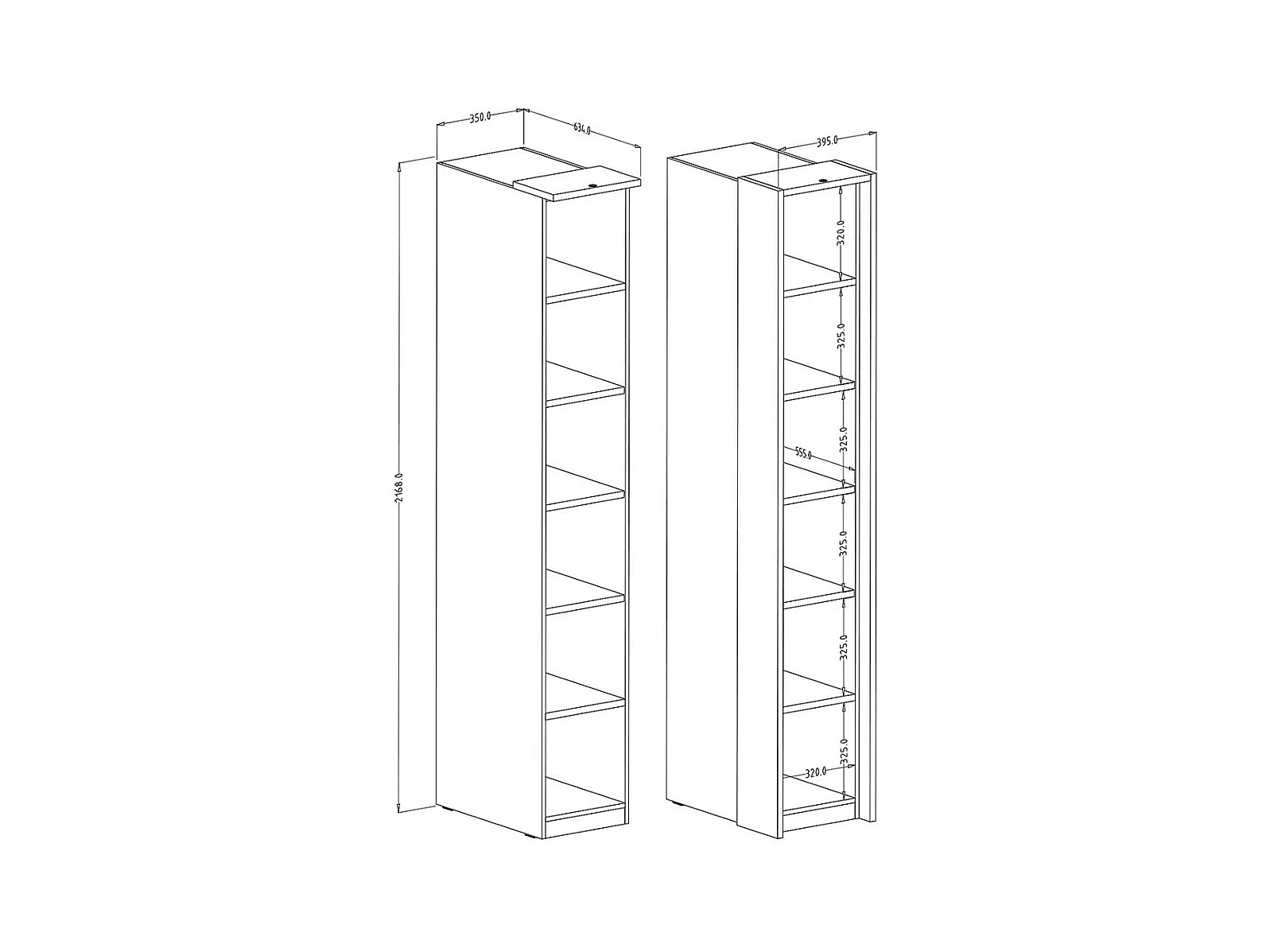 Bibliothèque pour dressing collection MODULO coloris blanc avec LED incluses.