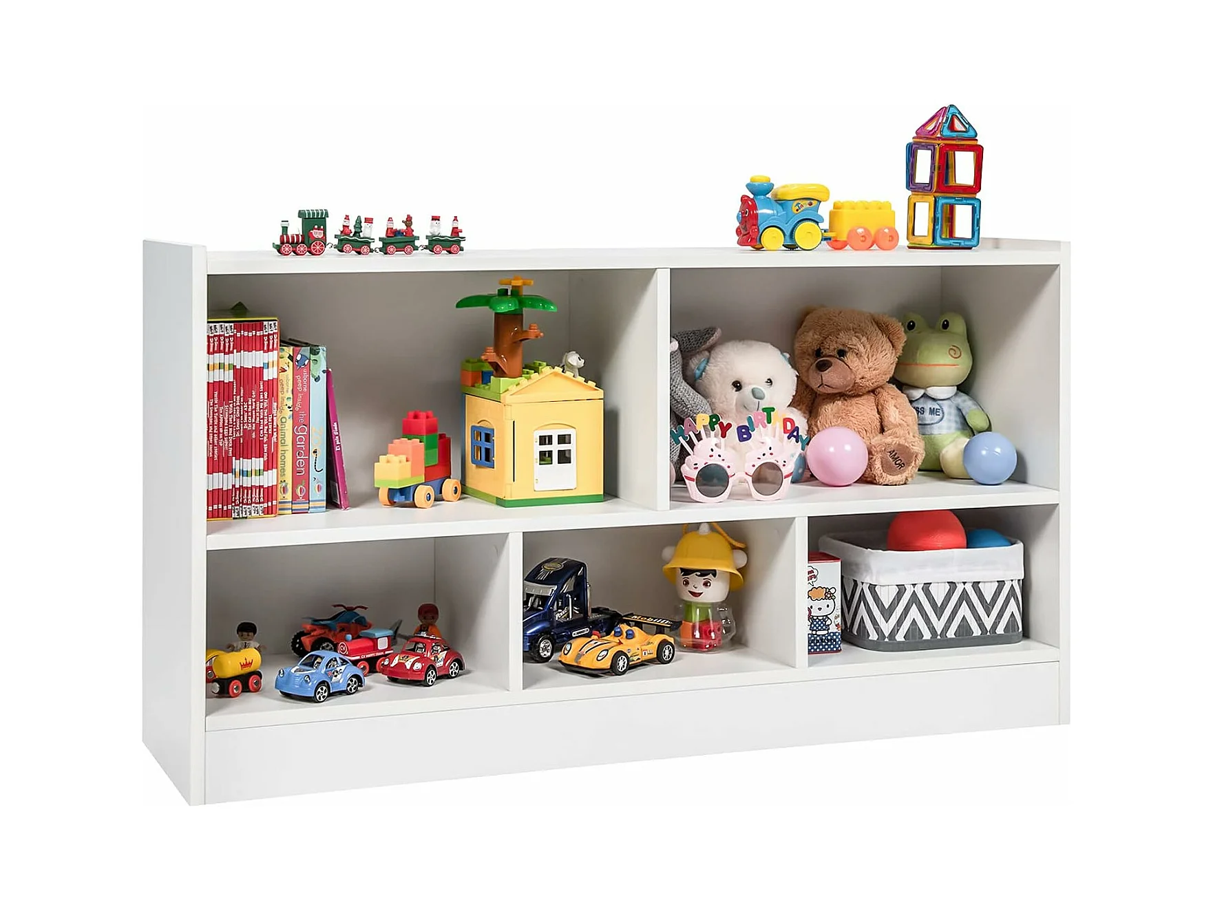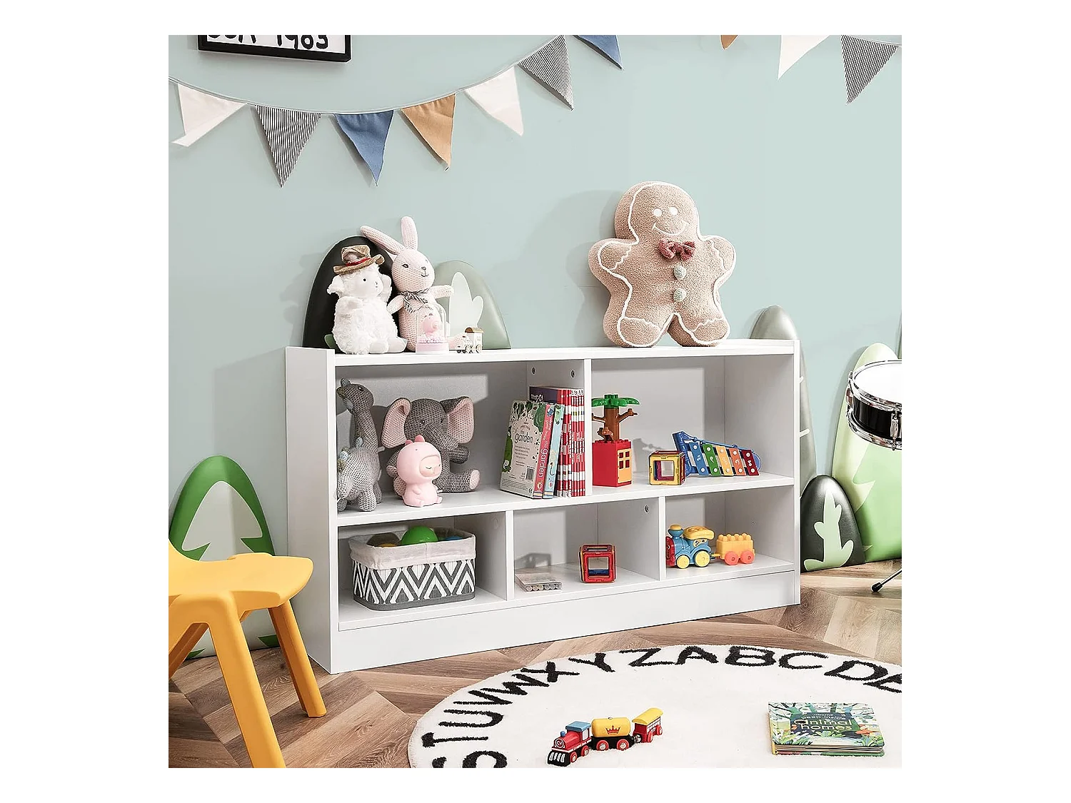 Bibliothèque pour enfants, avec 5 compartiments et patins antidérapants, 111 x 30 x 61,5 cm