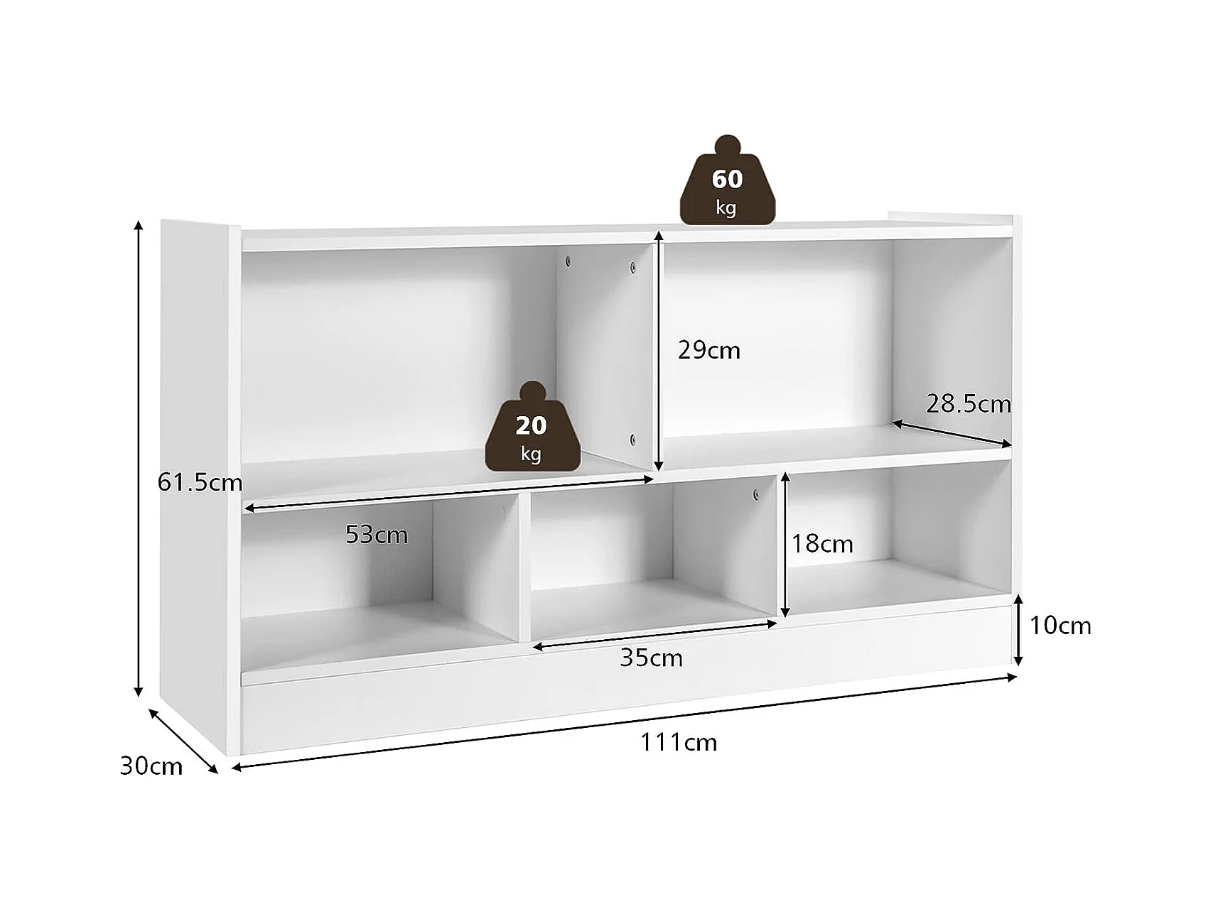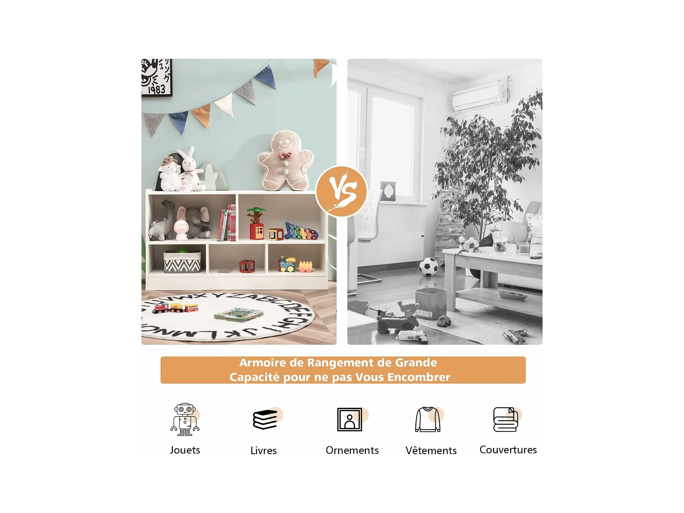 Meuble de rangement enfant. blanc. 2 compartiments