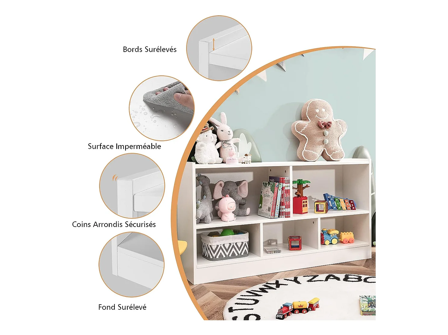 Bibliothèque Enfant avec Bac de rangement sur roulette