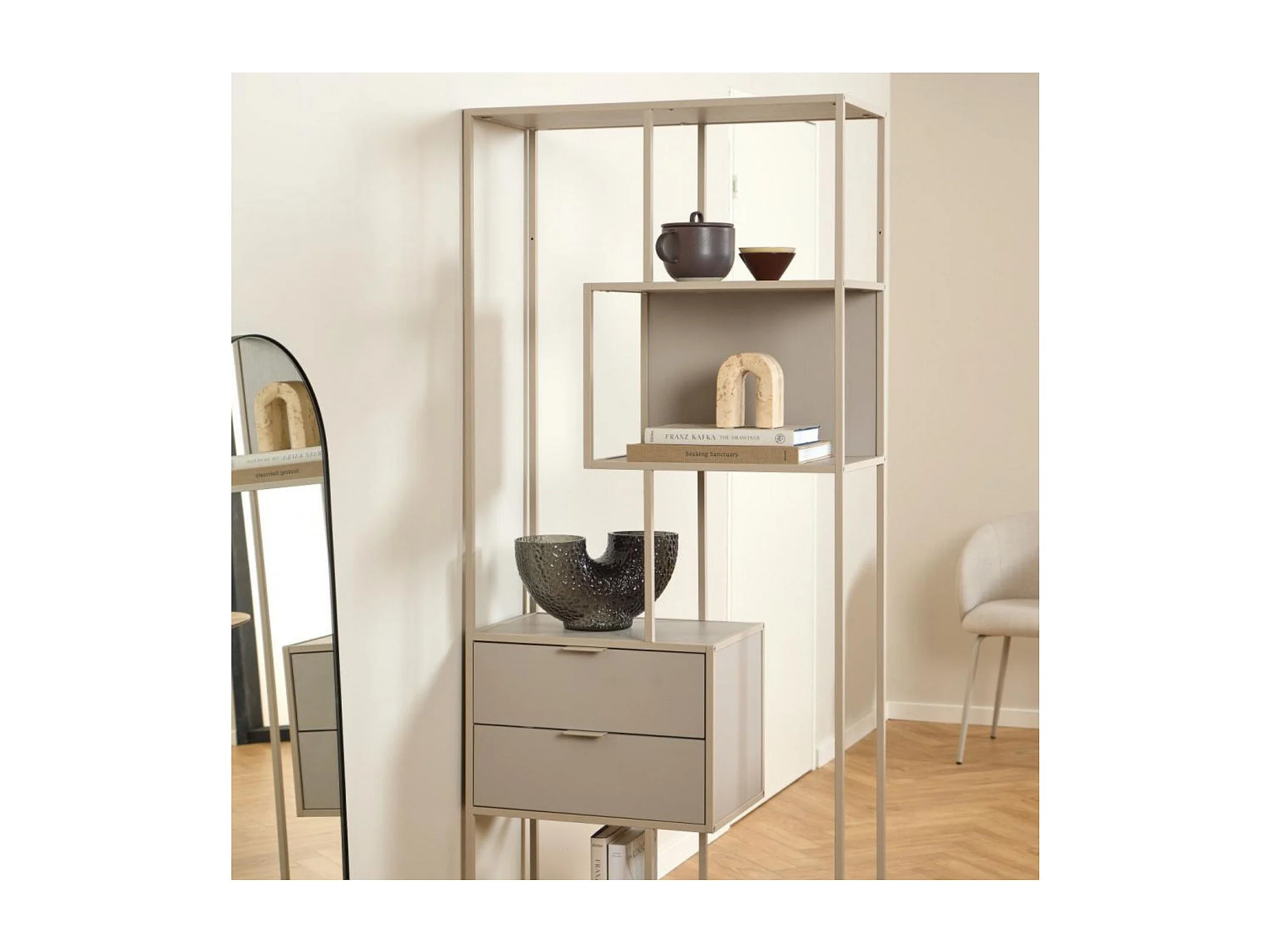 Bibliothèque scandinave en métal grège 2 tiroirs 4 étagères - BARRY