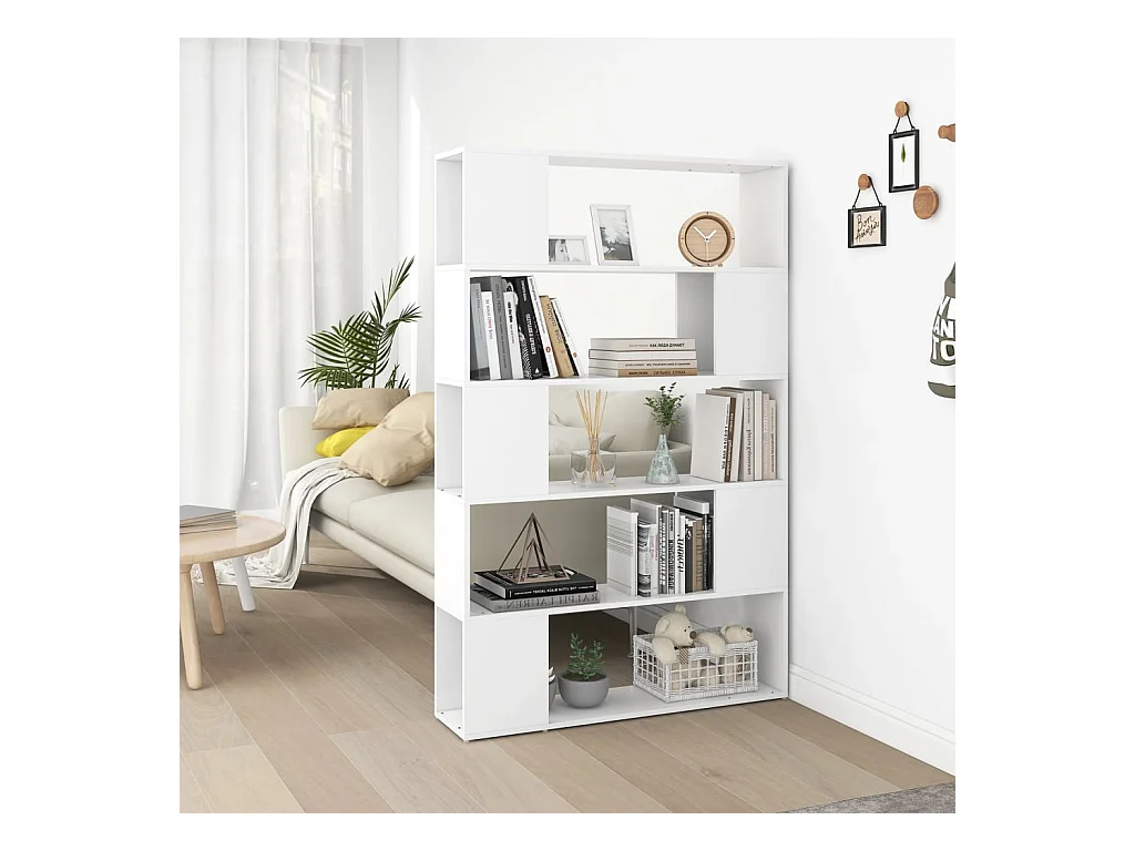 Bibliothèque séparateur de pièce blanc brillant bois ingénierie