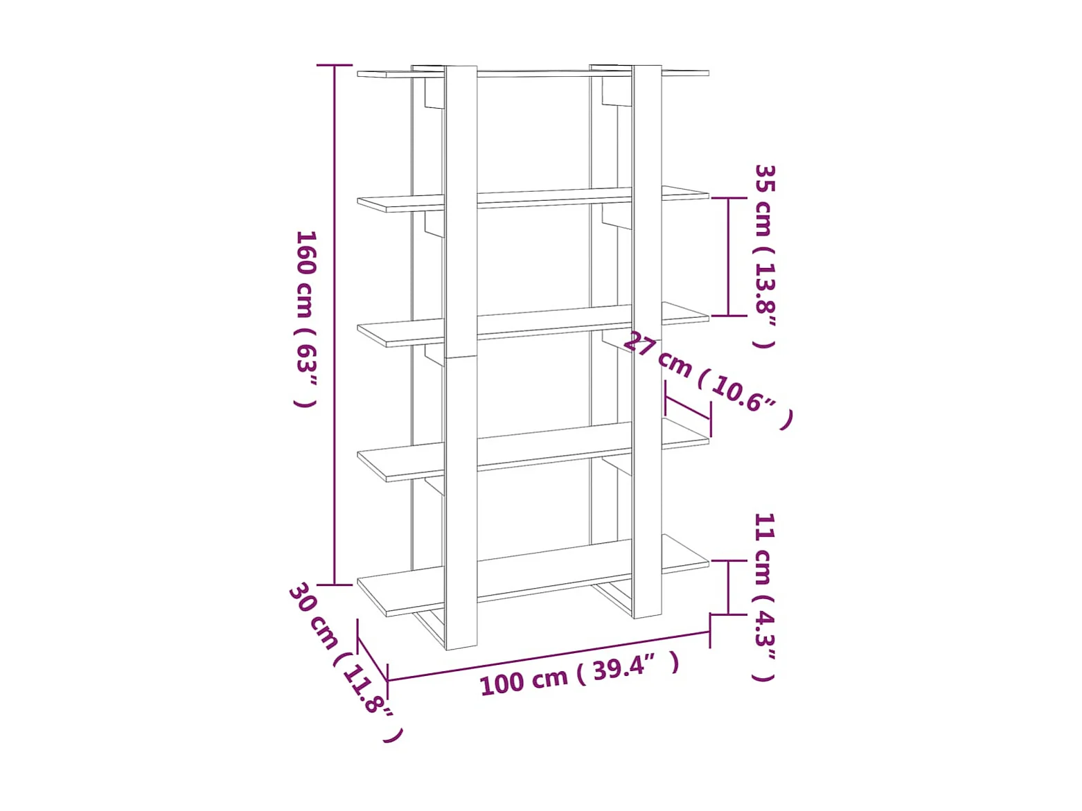 Bibliothèque à 5 niveaux Blanc 100x30x175
