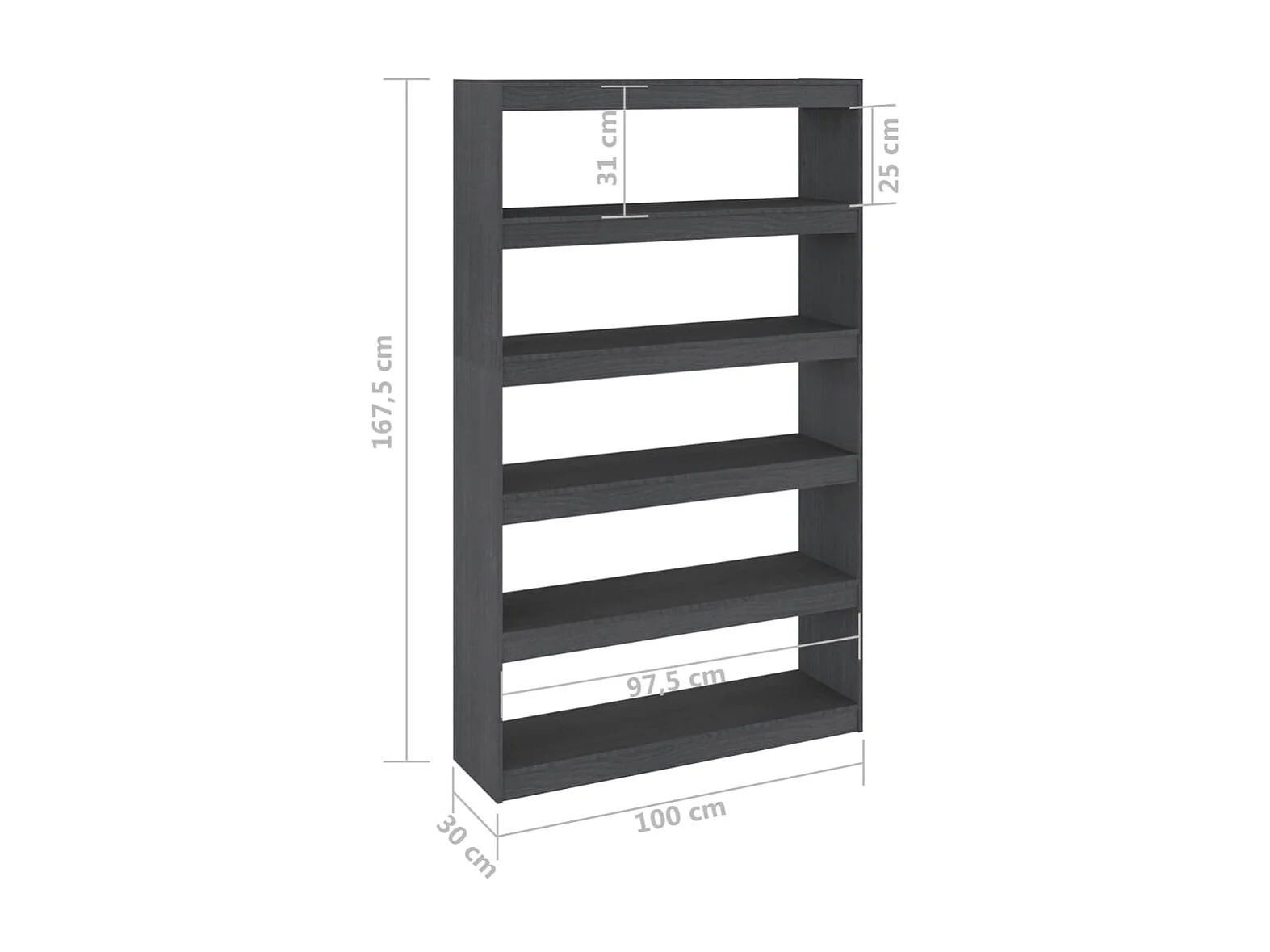 Bibliothèque-Séparateur de pièce Gris 100x30x167,5 Pin massif