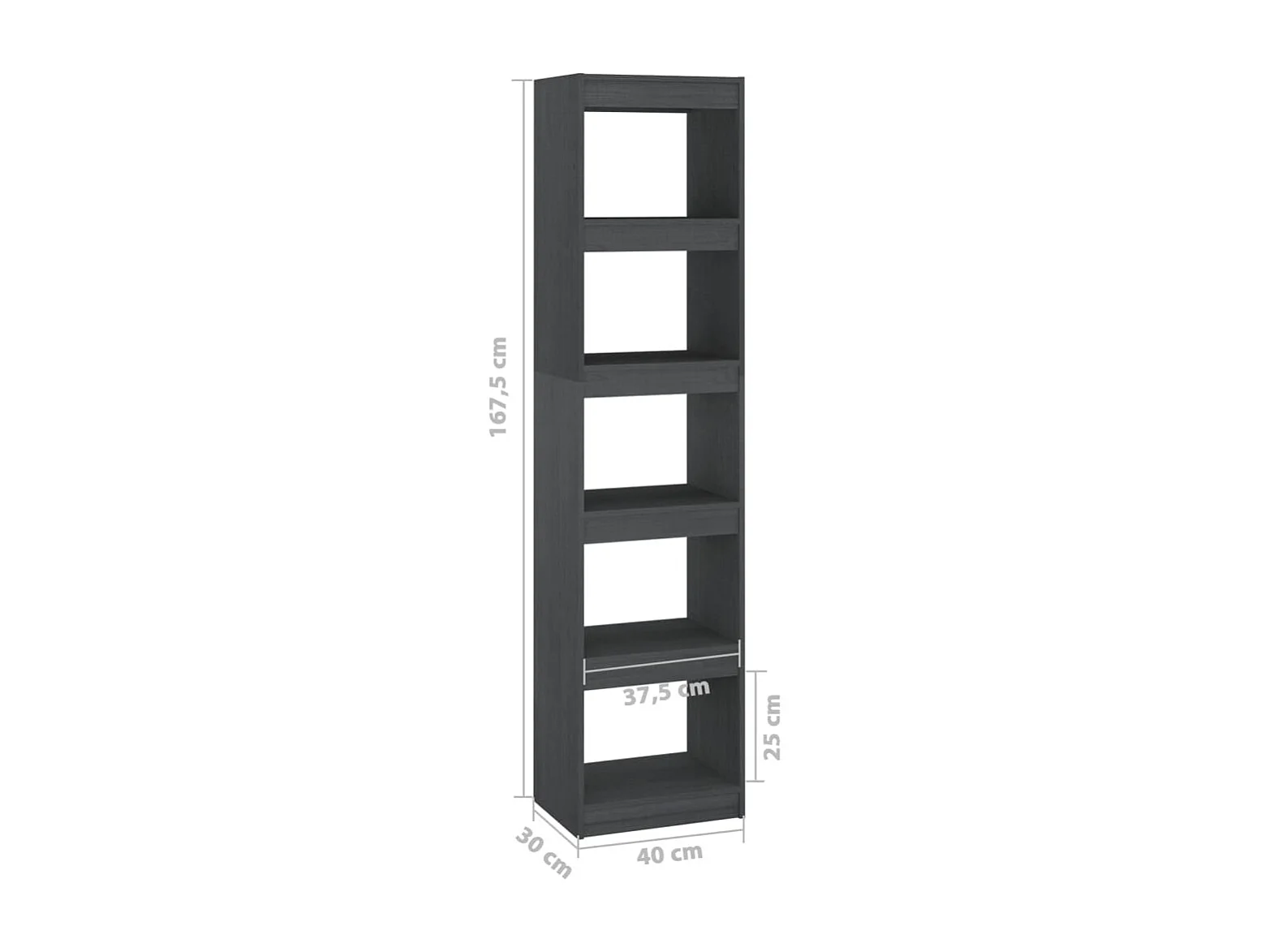 Bibliothèque-Séparateur de pièce Gris 40x30x167,5 Pin massif
