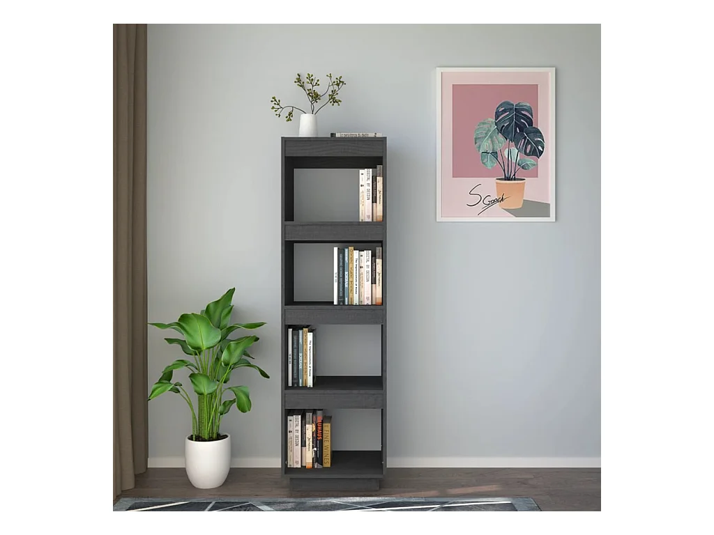 Bibliothèque-Séparateur de pièce Gris 40x35x135 Pin massif