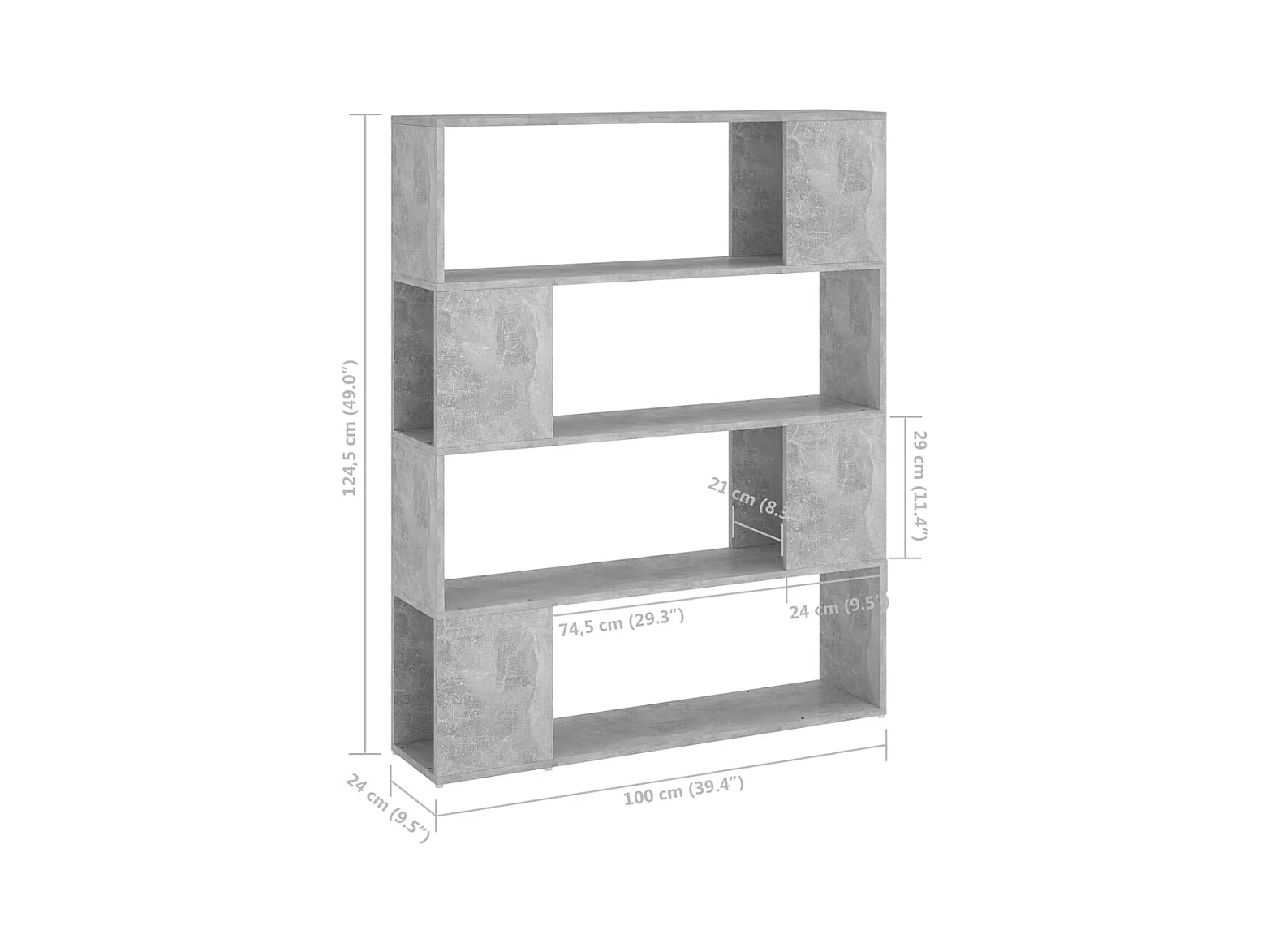 Bibliothèque/Séparateur de pièce Gris béton 100x24x124 cm