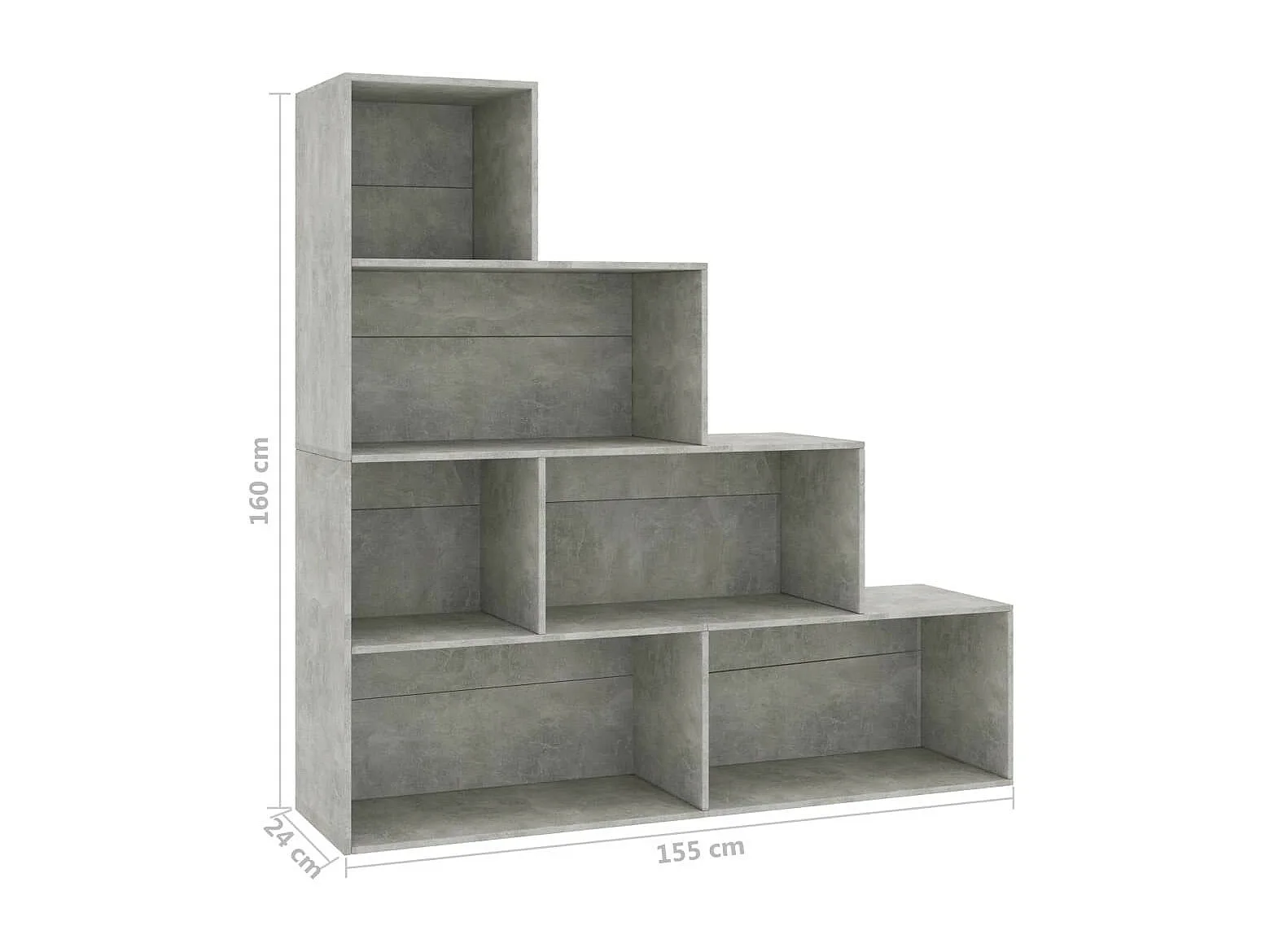 Bibliothèque à 5 niveaux Gris béton 40x24x175