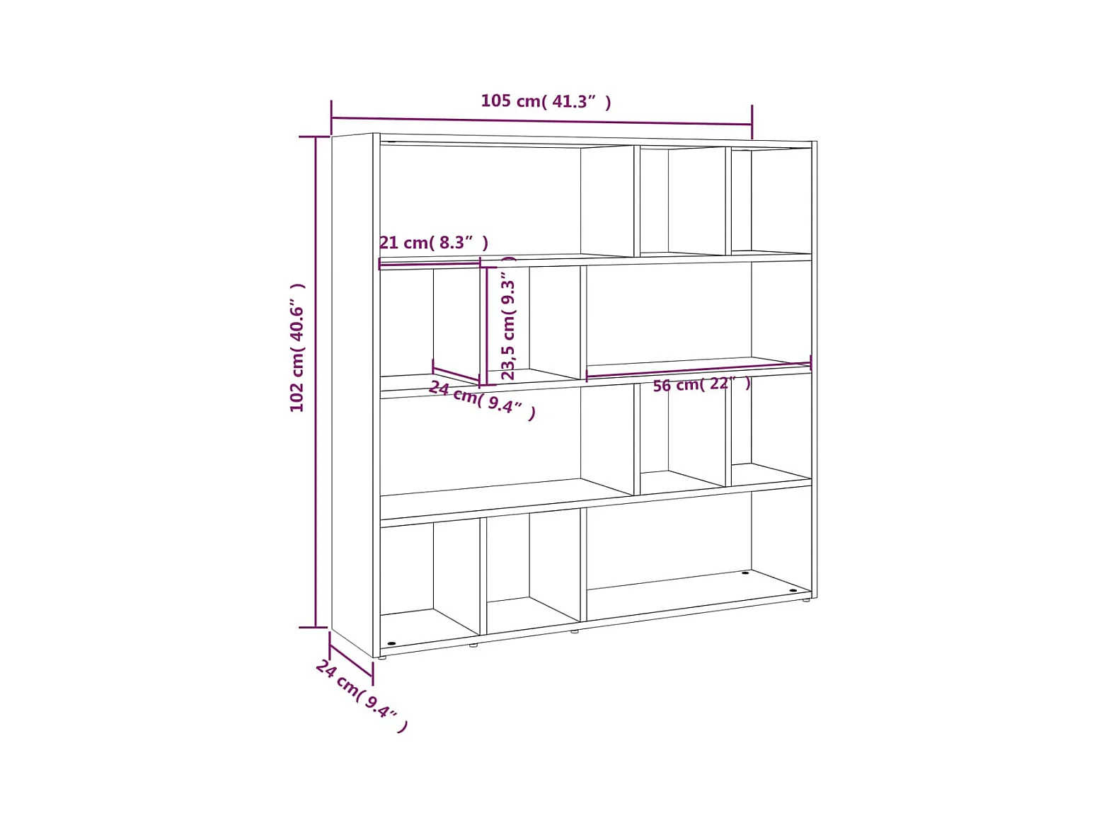 Bibliothèque-Séparateur de pièce Sonoma gris 105x24x102