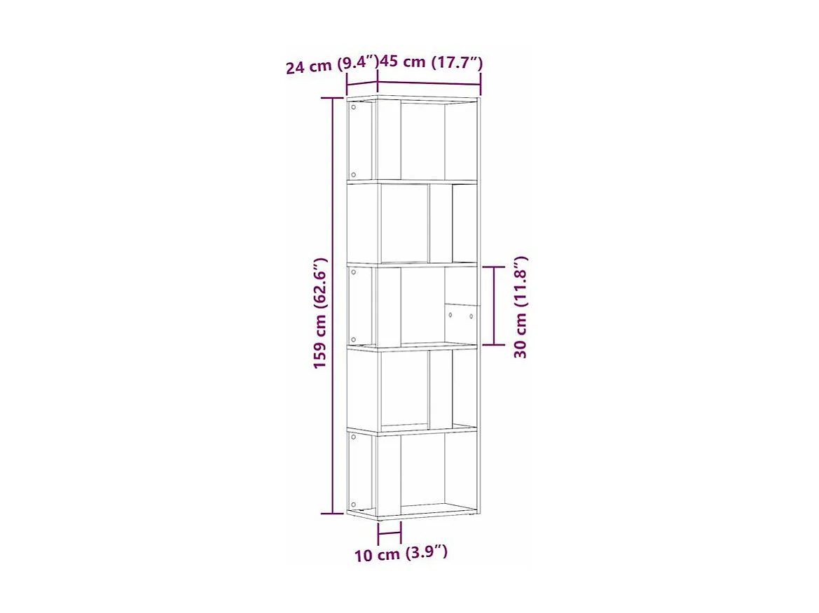 Bibliothèque à 5 niveaux chêne fumé 60,5x24x166,5
