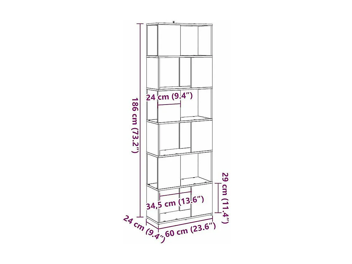 Bibliothèque/Séparateur de pièce Chêne fumé 60x24x186 cm
