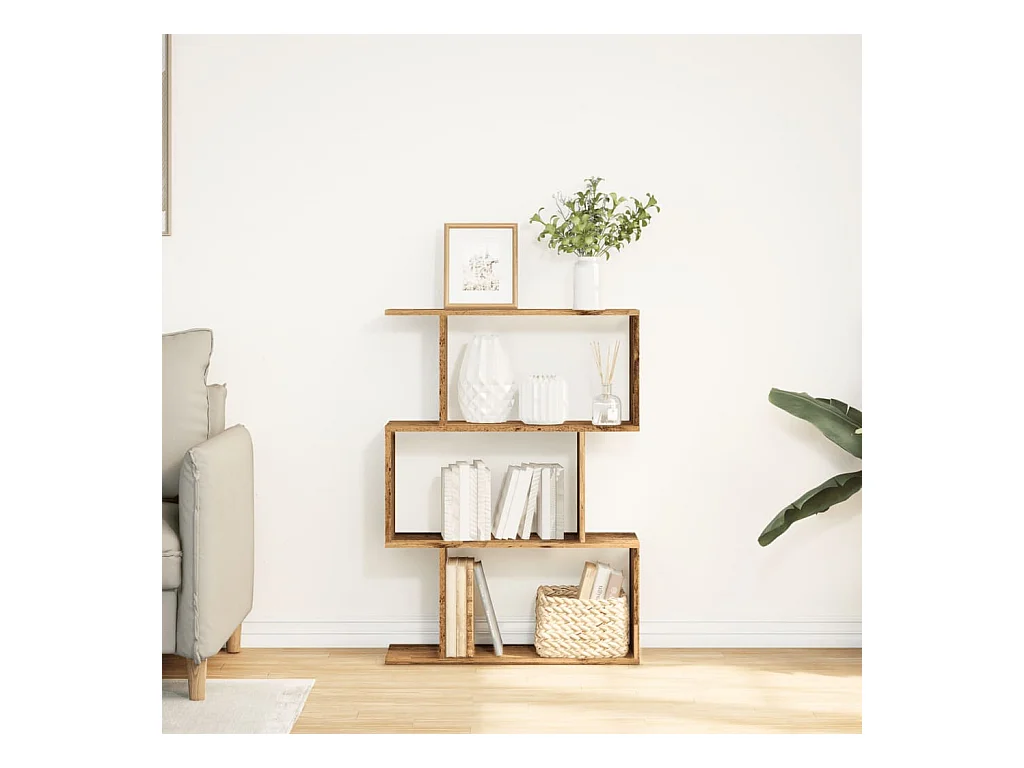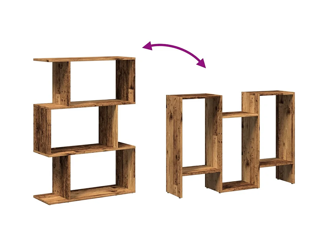 Bibliothèque séparatrice de pièce à 4 niveaux vieux bois 70x24x129cm