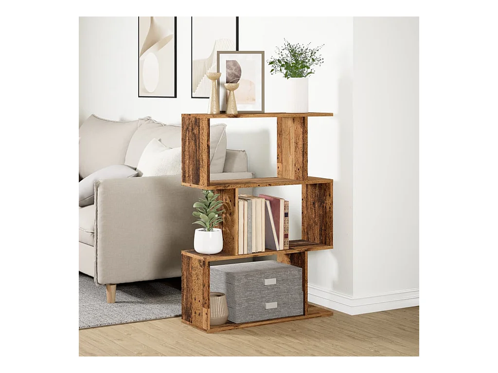 Bibliothèque séparatrice de pièce à 3 niveaux vieux bois 70x24x97 cm