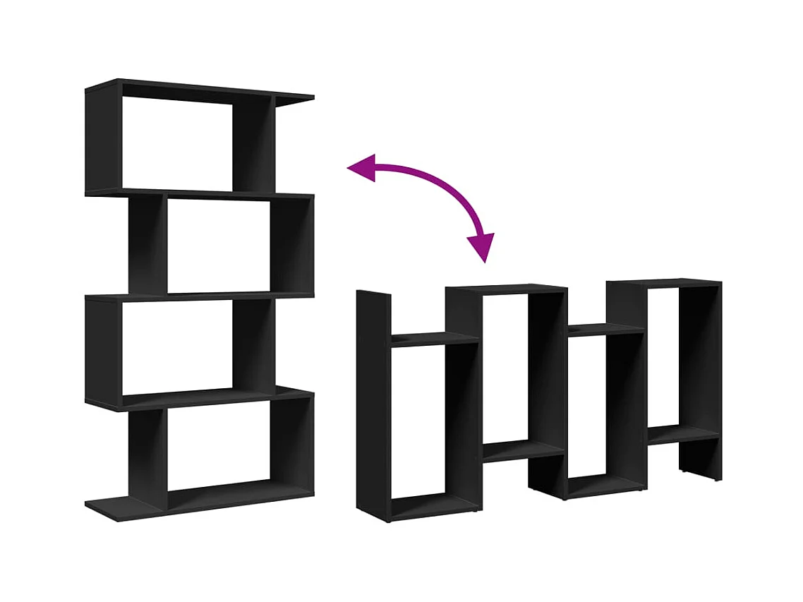 Bibliothèque séparatrice de pièce à 4 niveaux noir 70x24x129 cm