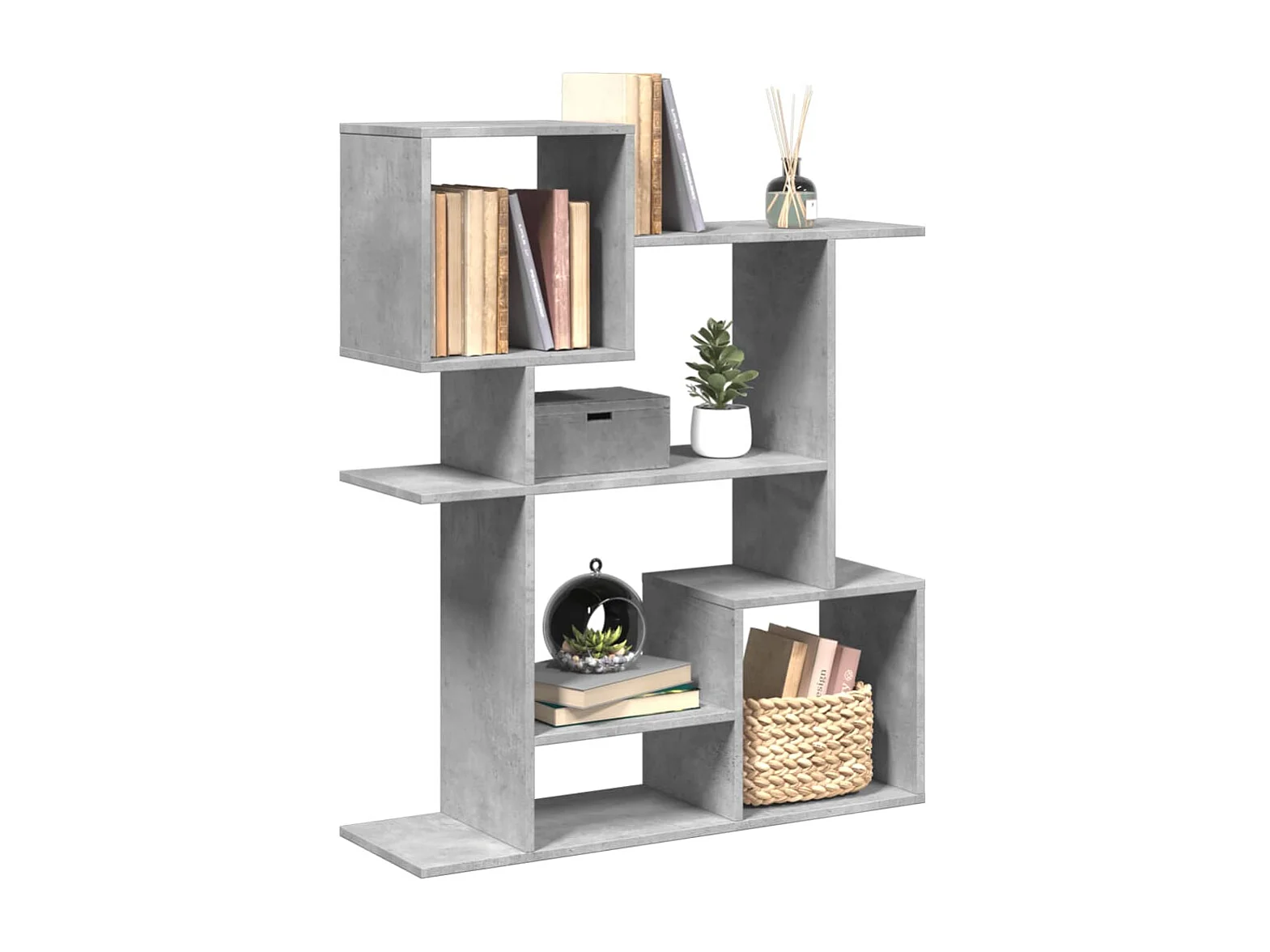 Bibliothèque séparatrice de pièce à 3 niveaux gris béton 99x29x99 cm