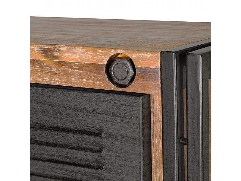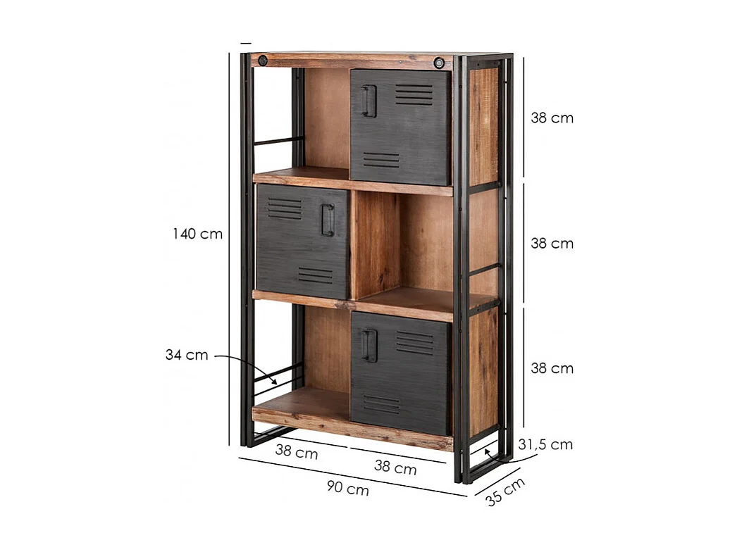 Bibliothèque 3 étagères 3 portes bois d'acacia et métal - WORKSHOP