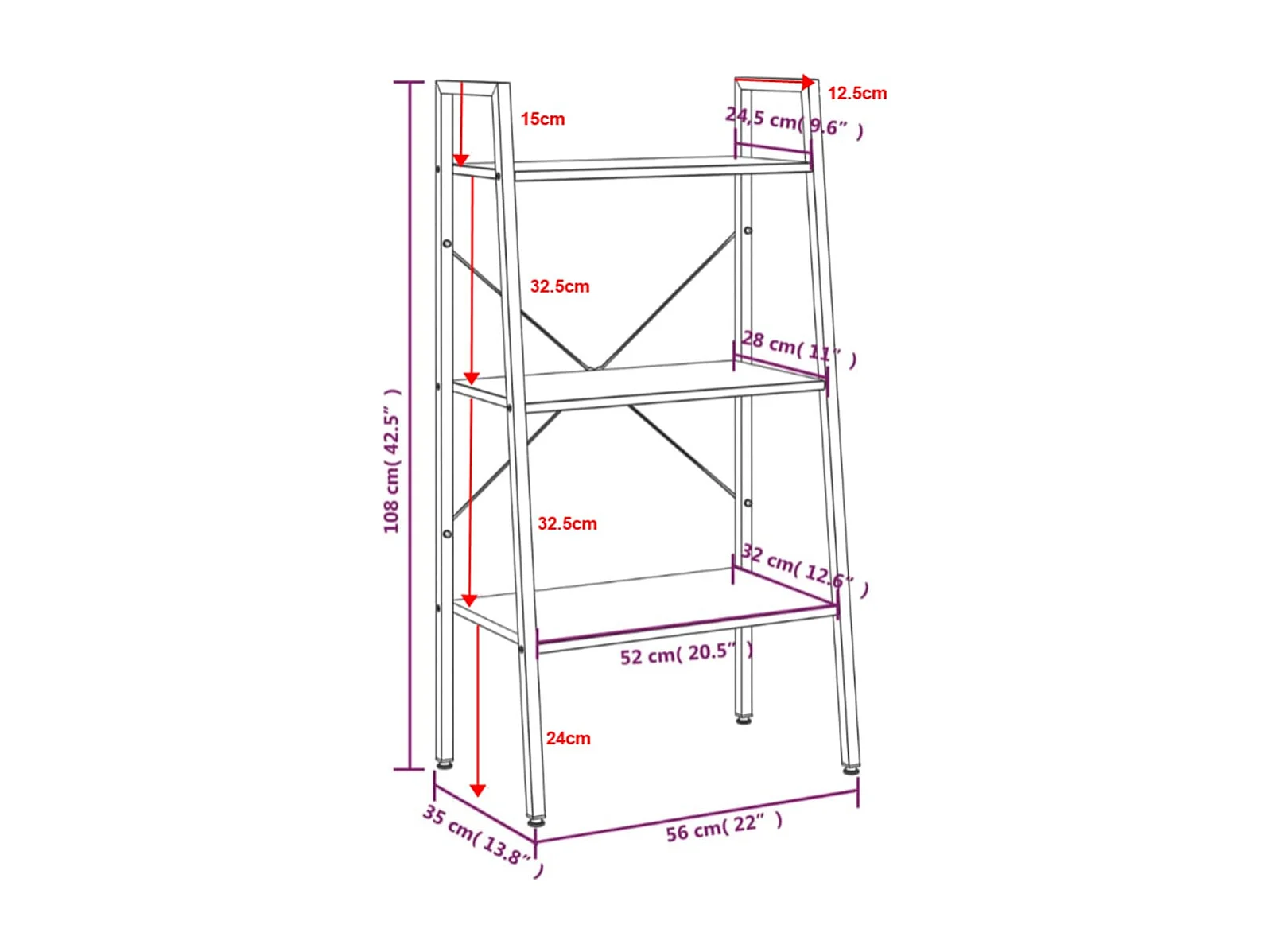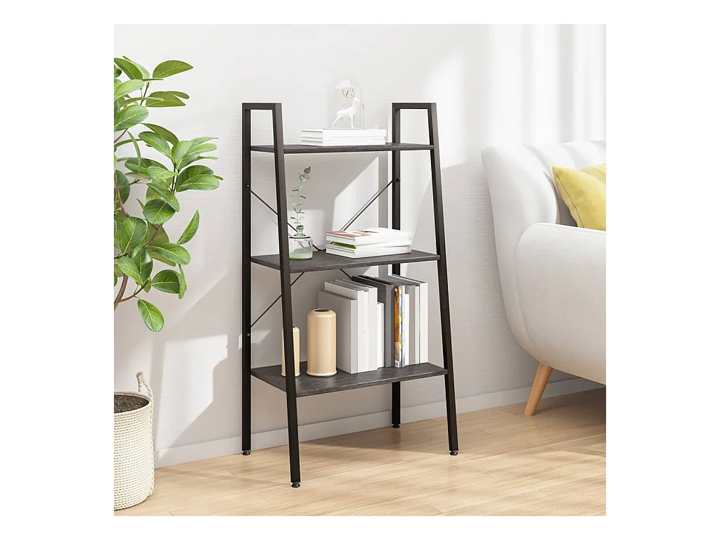 Bibliothèque sur pied 3 niveaux Noir 56x35x108 cm