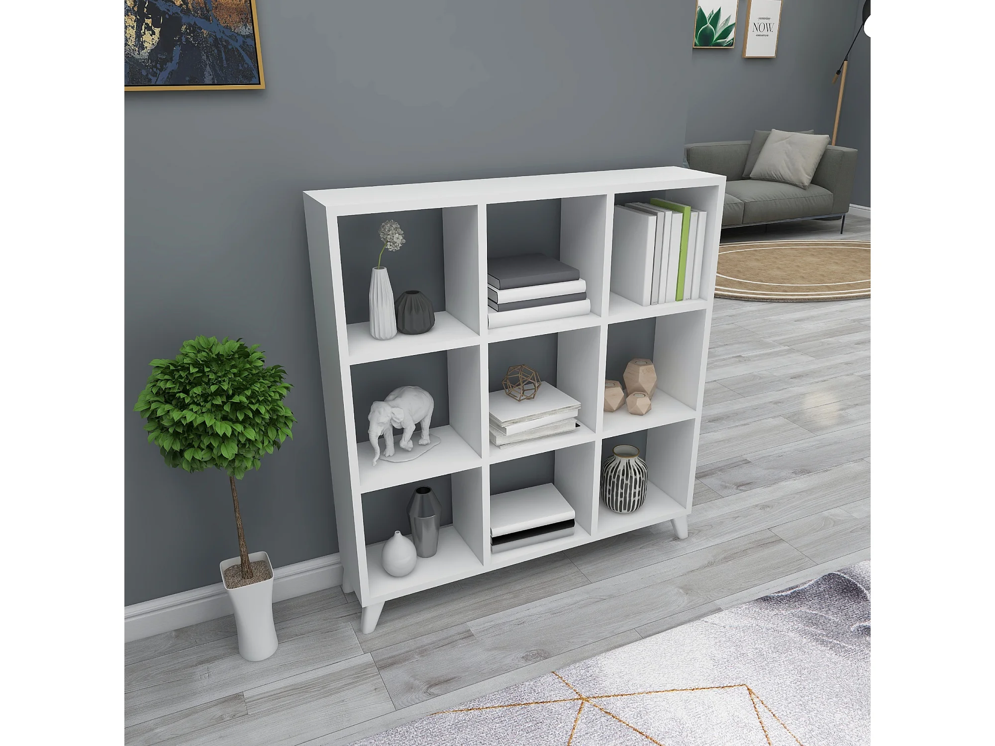 Bibliothèque Svedala à 9 compartiments de rangement 100 x 88 x 20 cm blanc [en.casa]