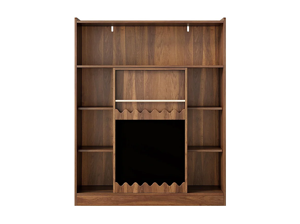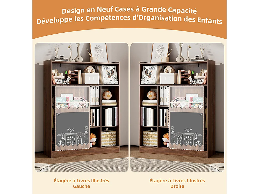 Bibliothèque tableau portes coulissantes rangement livres 9 compartiments noyer