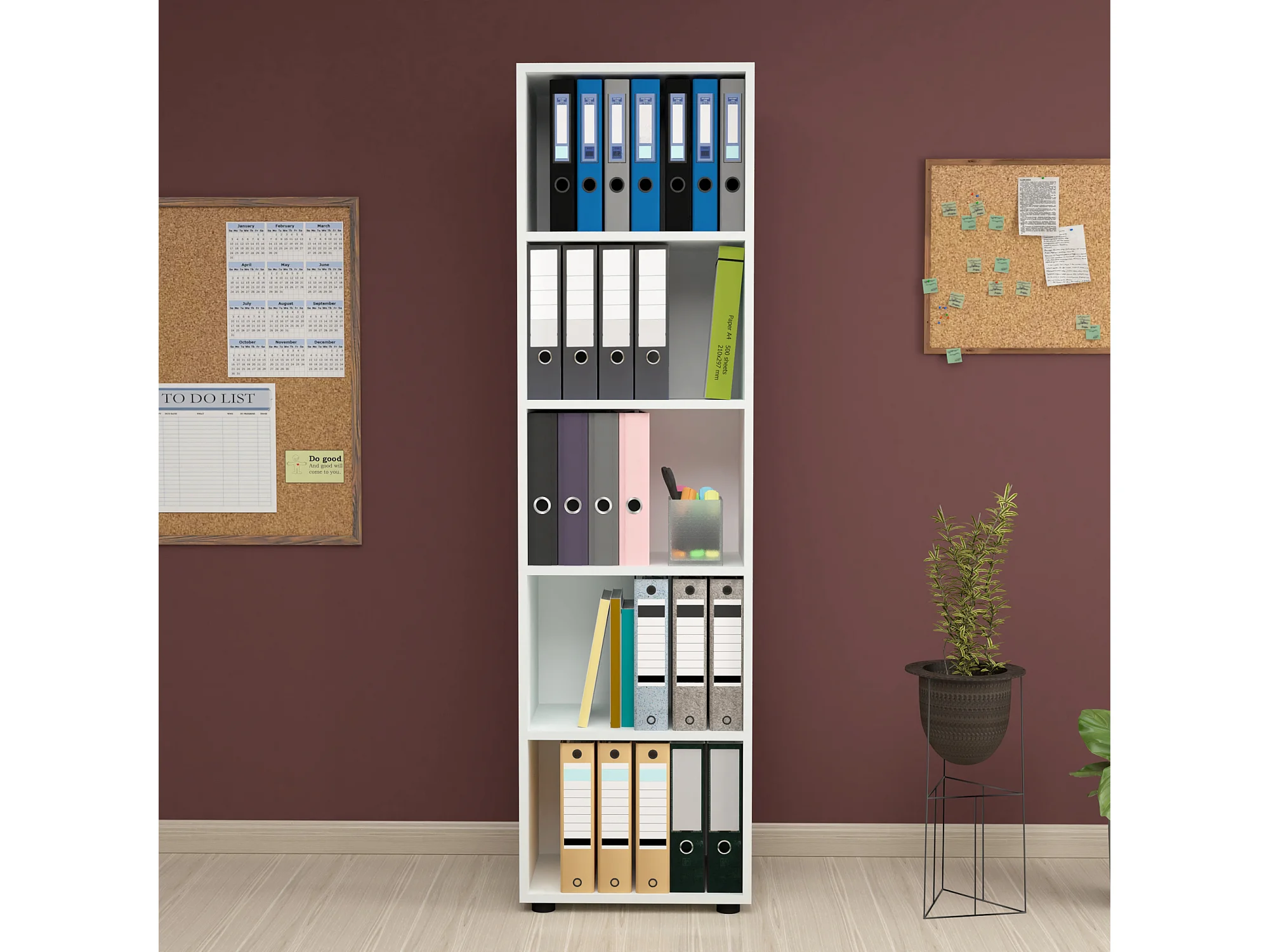 Bibliothèque Dmacagg, Bibliothèque haute avec 5 étagères, Etagère de bureau ou de chambre, Etagère moderne avec compartiments, 52x25h80 cm, Blanc