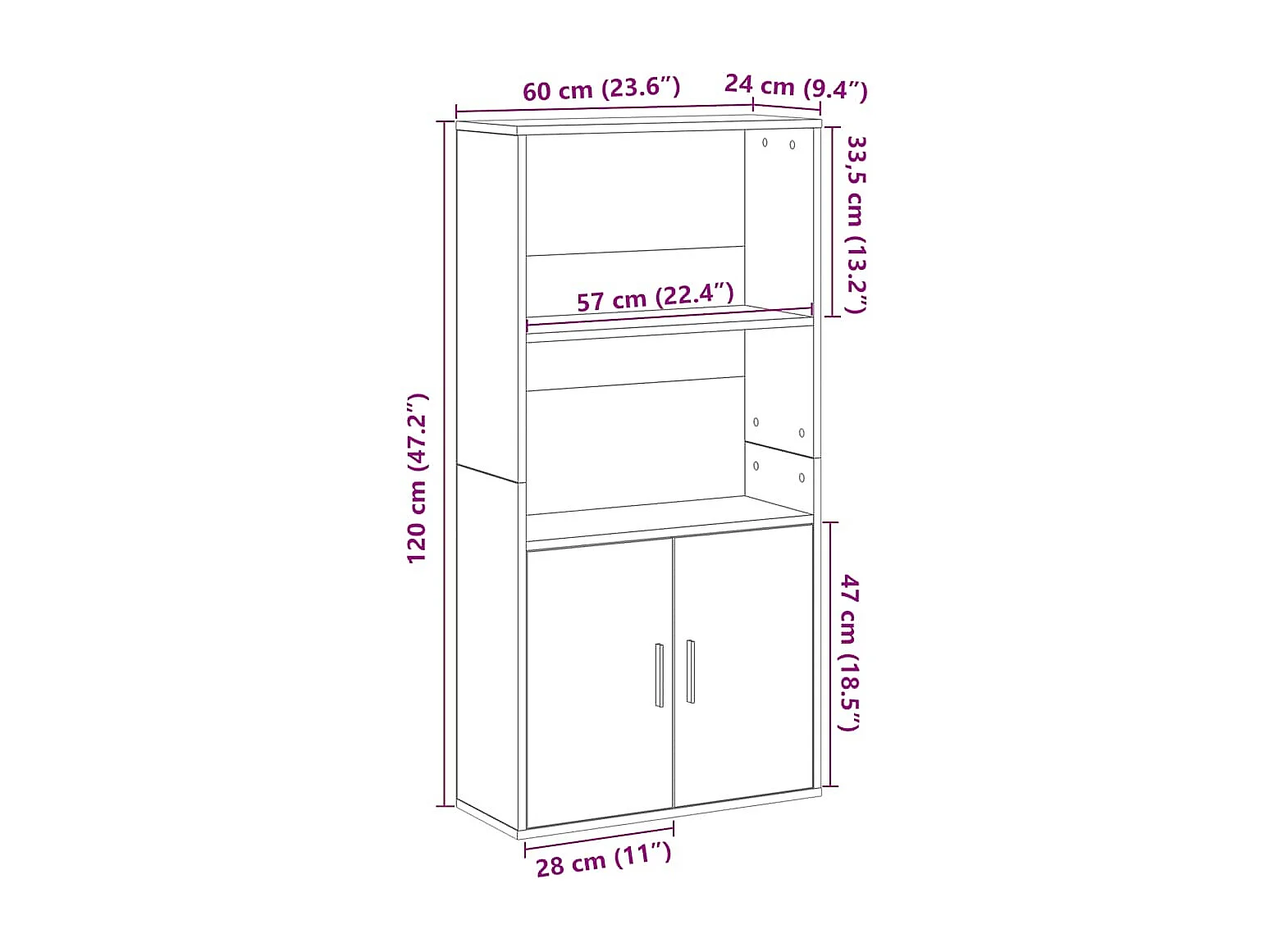 Bibliothèque chêne fumé 60x24x120 cm bois d'ingénierie