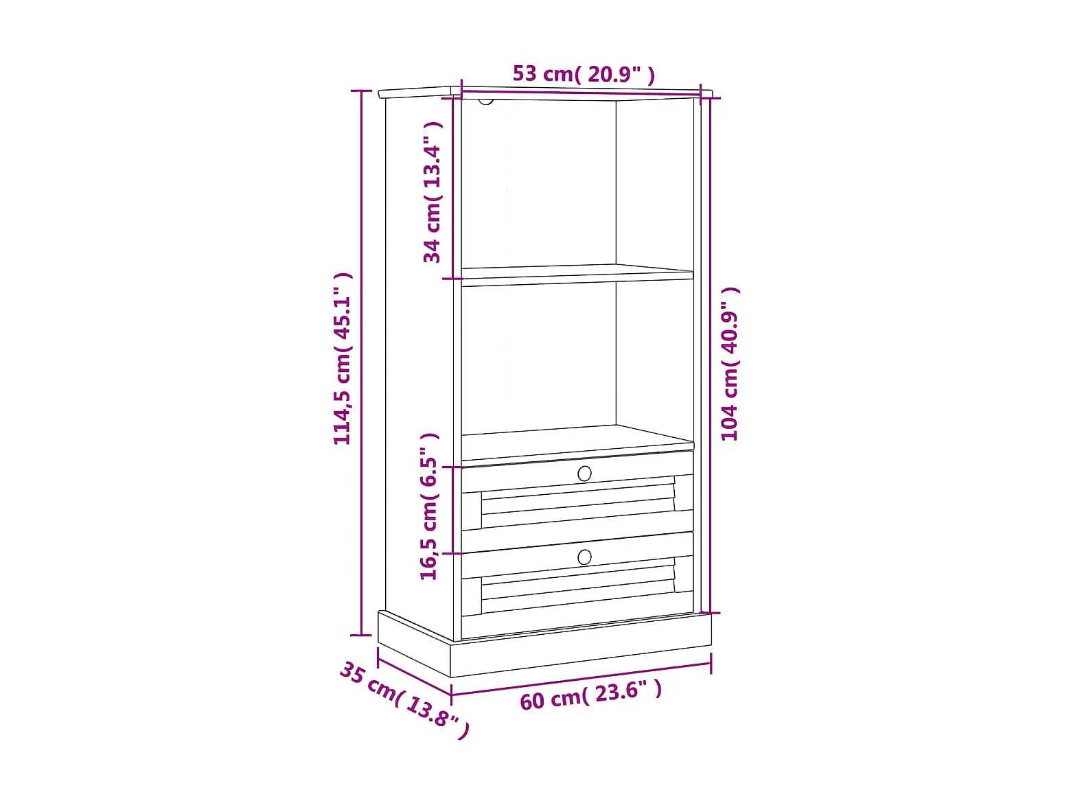 Bibliothèque VIGO blanc 60x35x114,5 bois massif de pin
