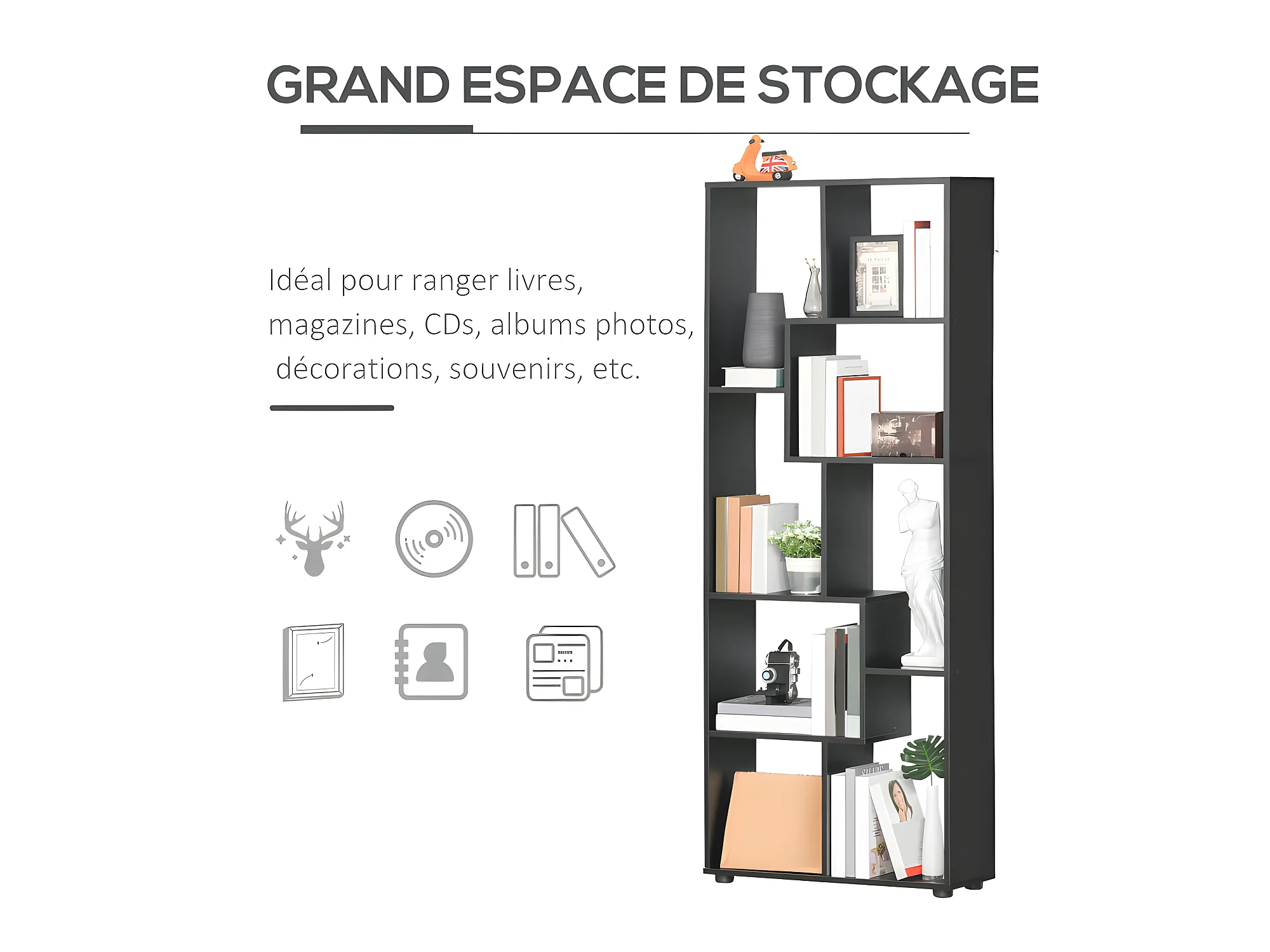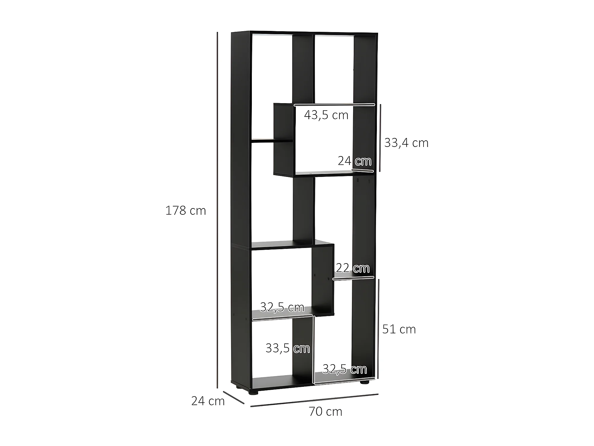 Bibliothèque séparatrice de pièce à 4 niveaux noir 70x24x129 cm