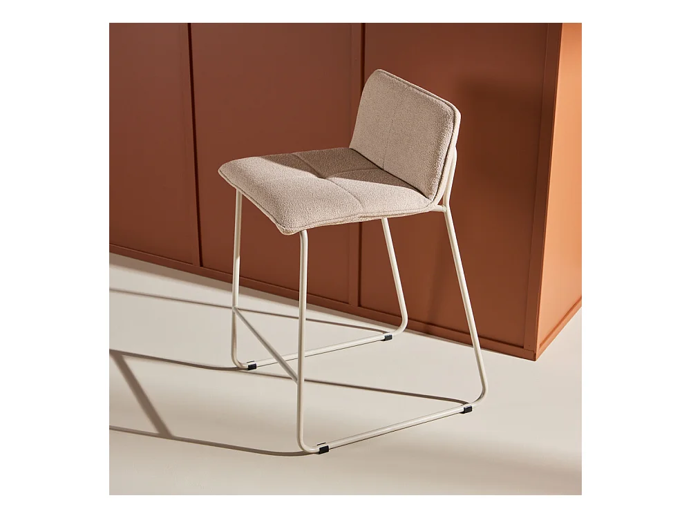 Bisbee - Lot de 2 tabourets de bar en tissu bouclette pieds beiges H65cm - Beige